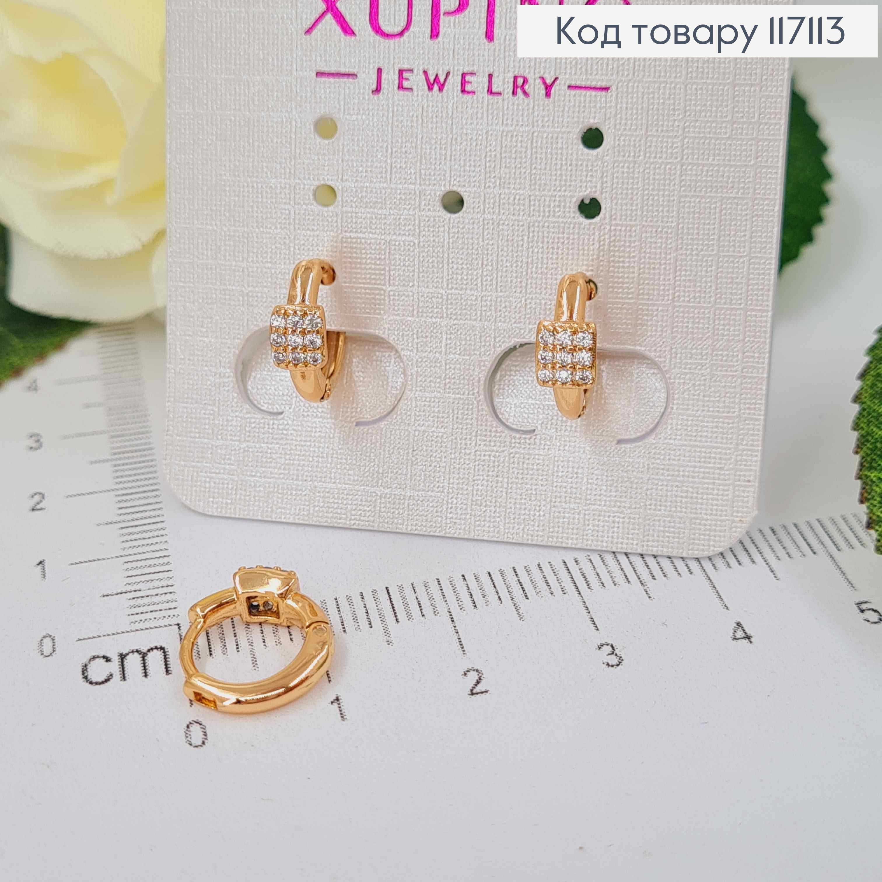 Серьги кольца 1см, с квадратиком в камешках, Xuping 18К