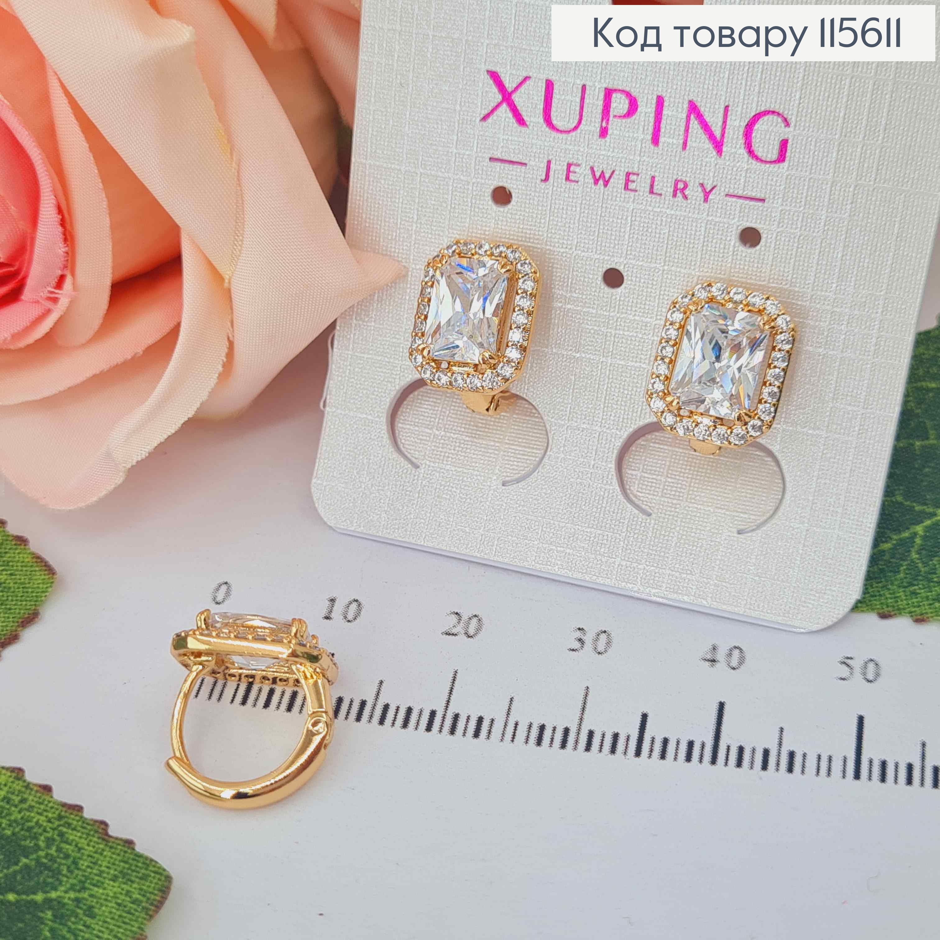 Серьги с квадратным блестящим камнем, 1,9см, английская застежка, Xuping 18K 110257 фото