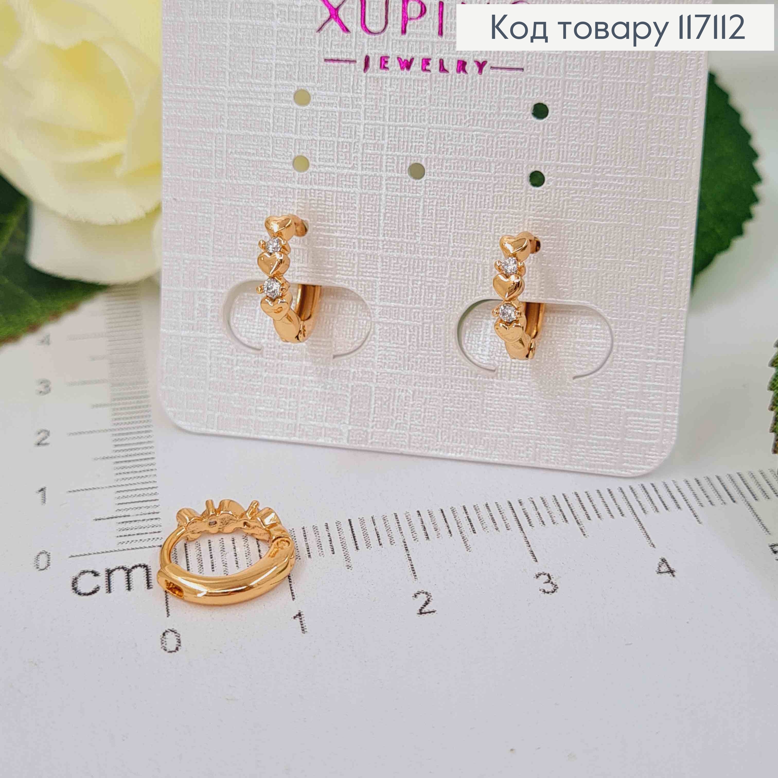 Серьги кольца 1см, с маленькими сердечками и камешками, Xuping 18К