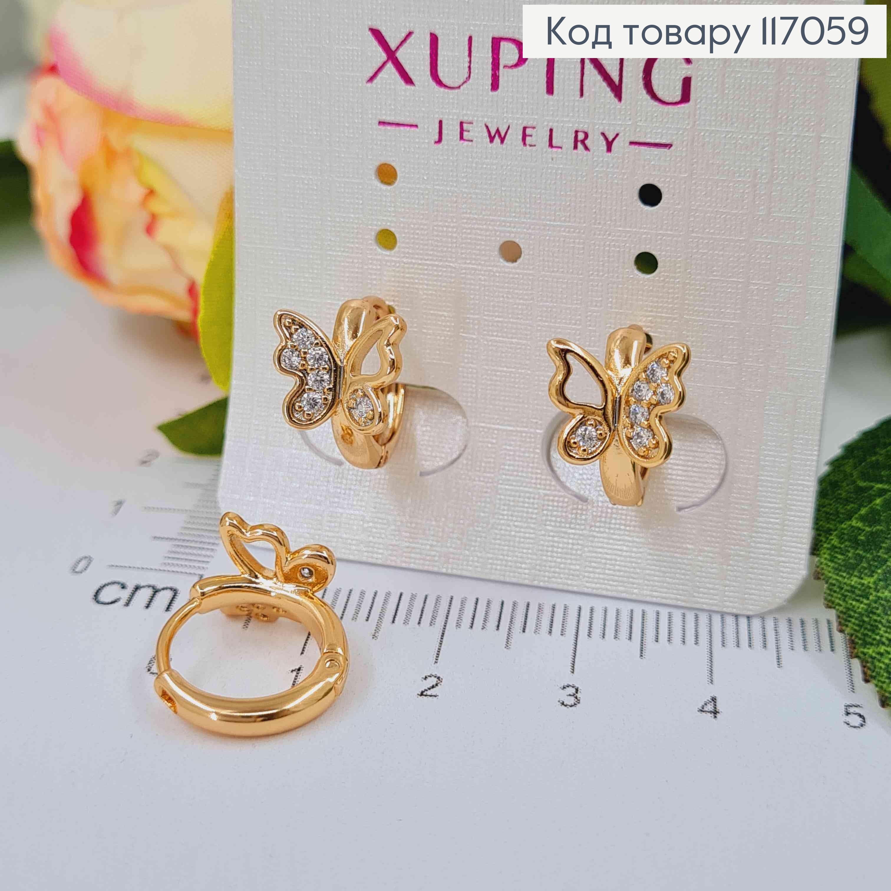 Серьги кольца 1,4см, с Бабочкой в камешках, Xuping 18K