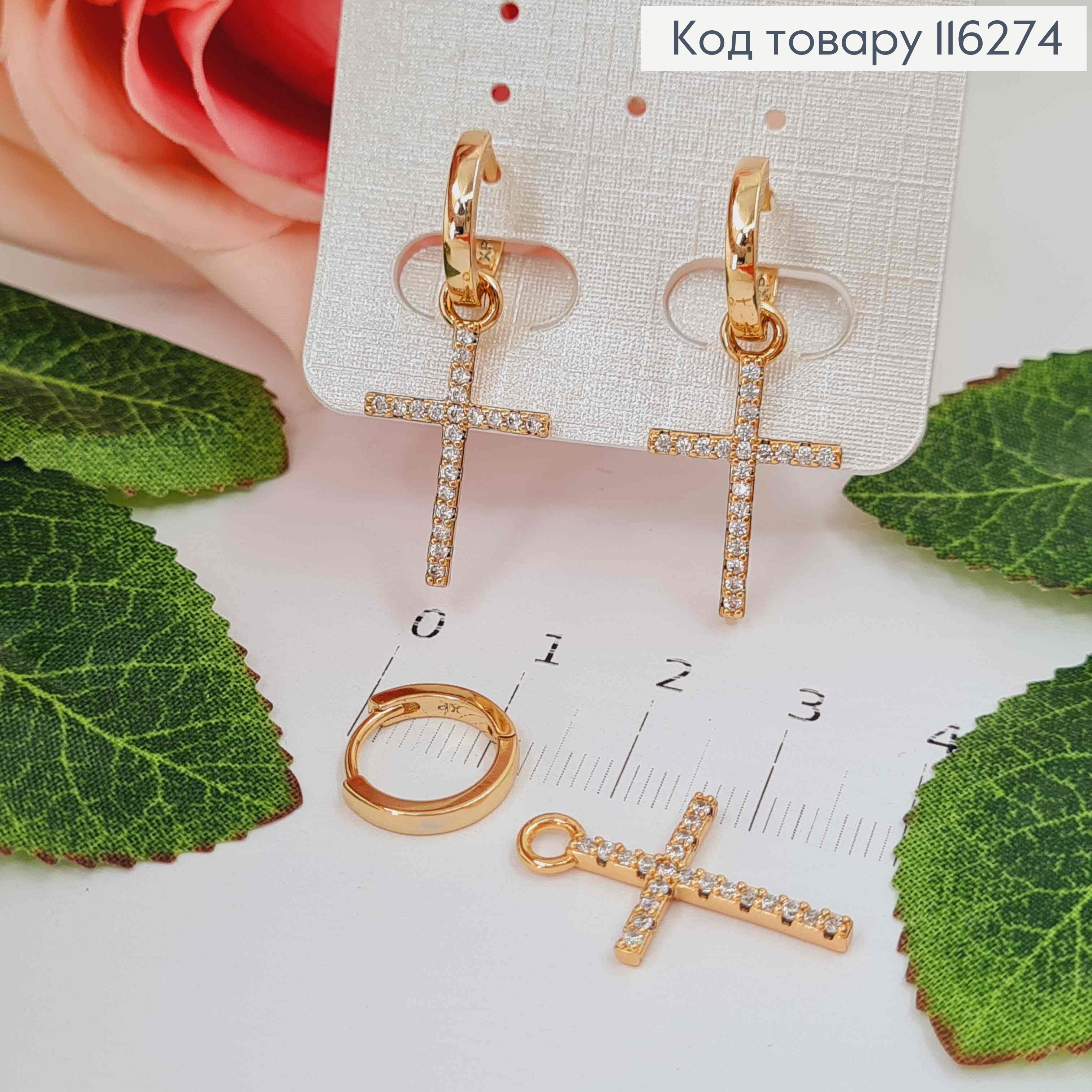 Серьги кольца 1см, с подвесками Крестиками в камешках, 2*1,3см, (трансформ.) Xuping 18К