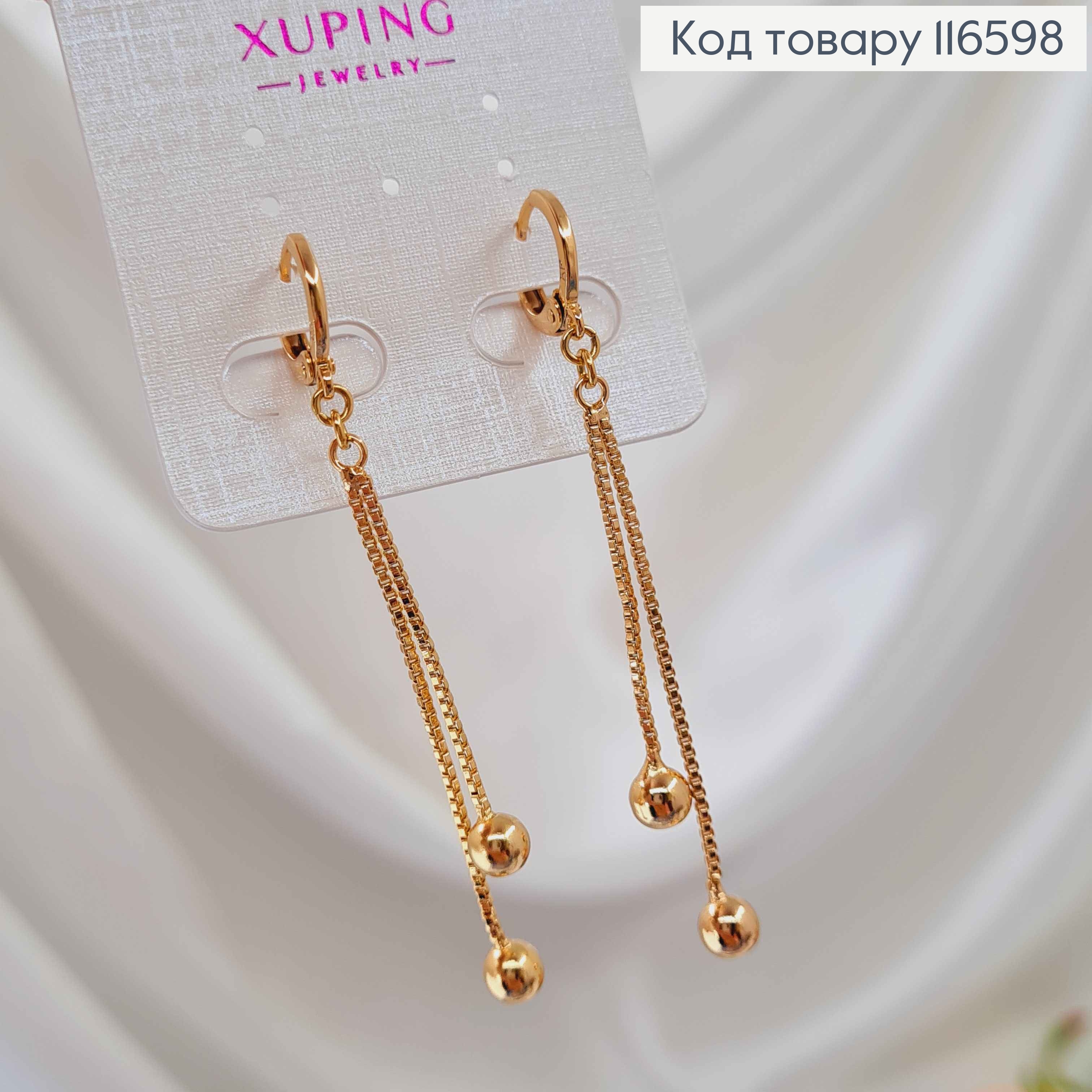 Серьги кольца с шариками на подвесных цепочках, размер 1,1+7см, Xuping 18K 110248 фото