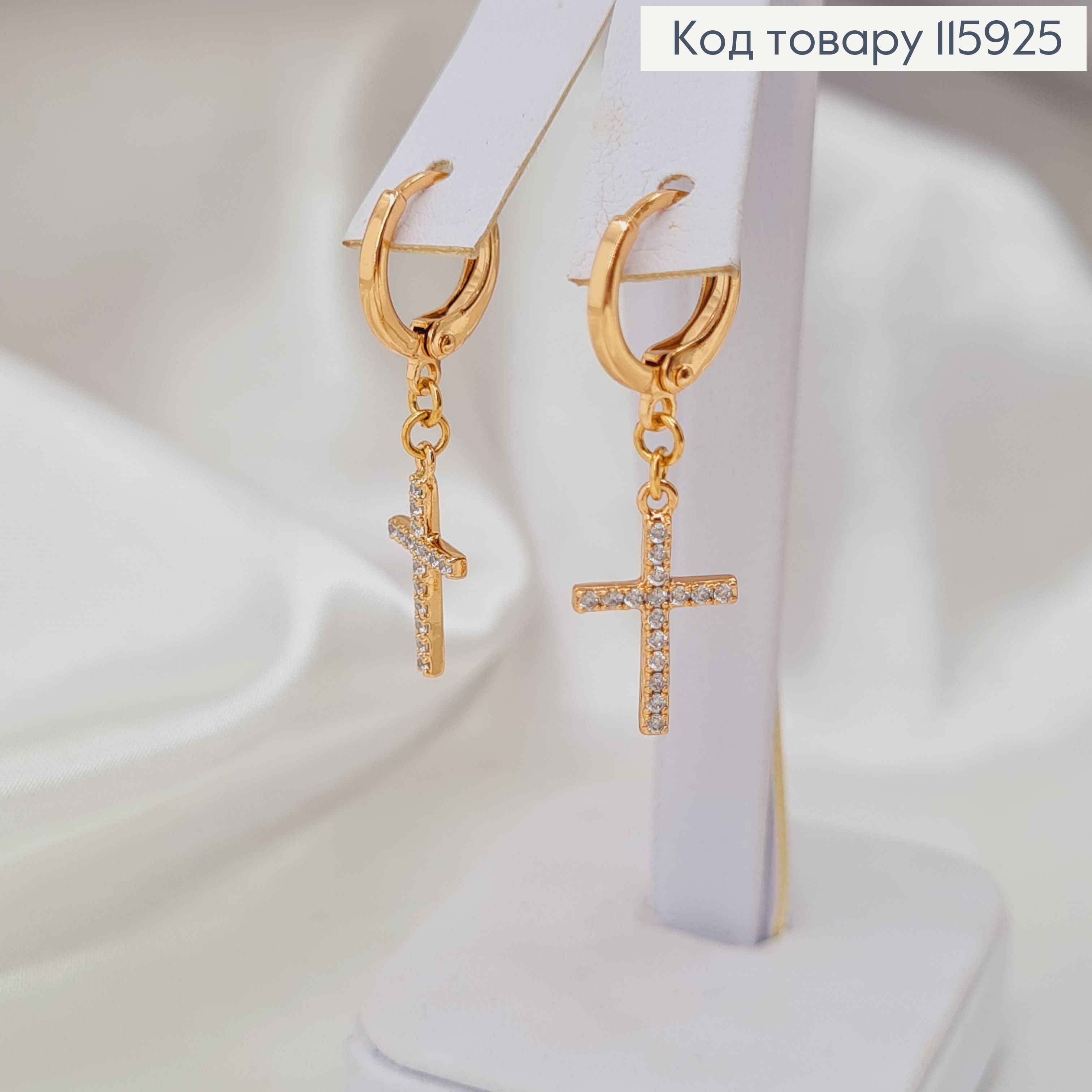 Серьги кольца 1 см, с подвеской Крестиками в камешках, 1,5 см, Xuping 18K