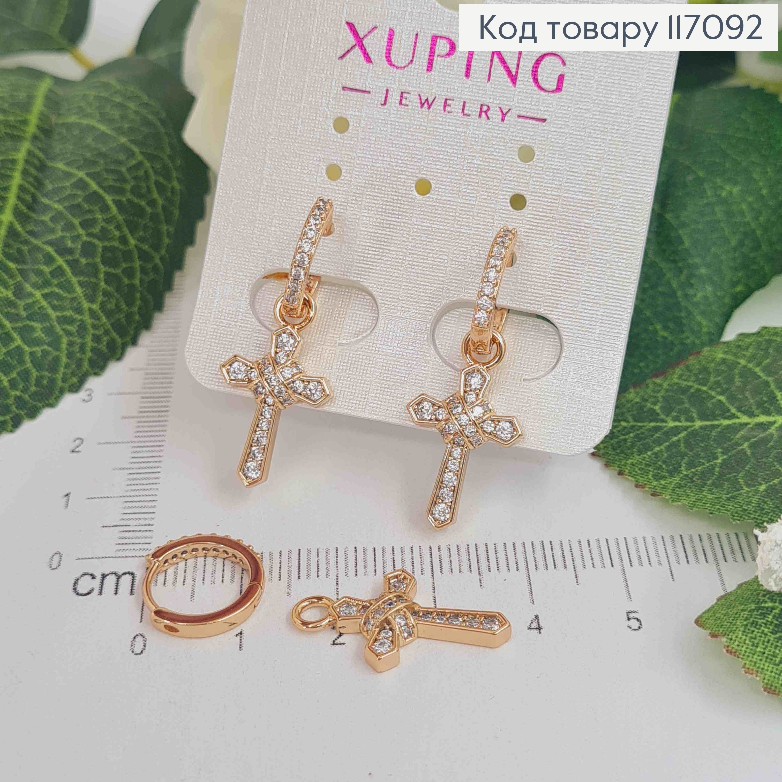 Серьги кольца 1см, С подвеской крестиком, в камешках, 1,6см, Xuping 18K