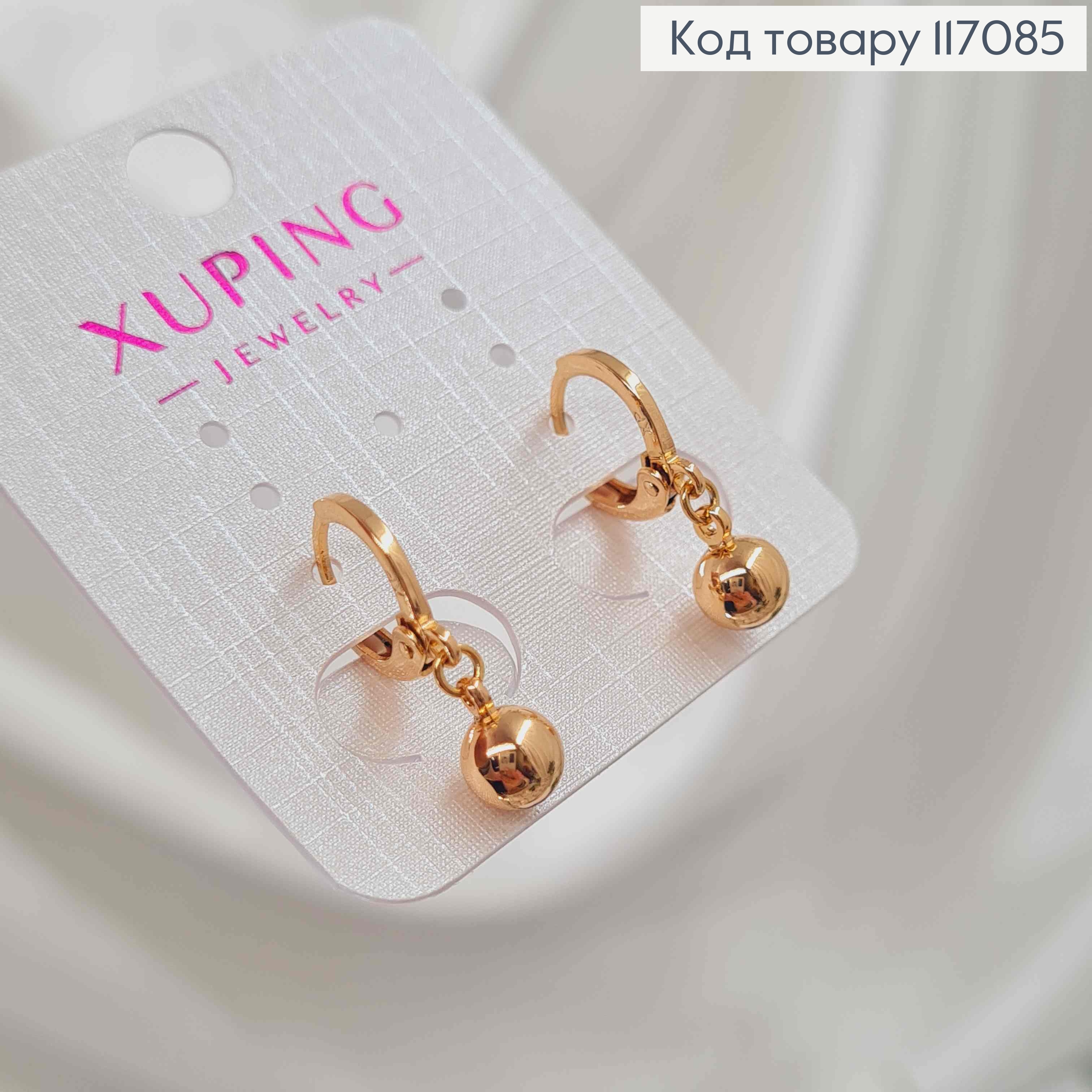 Серьги кольца 1см, с подвеской шариком 5мм, Xuping 18K