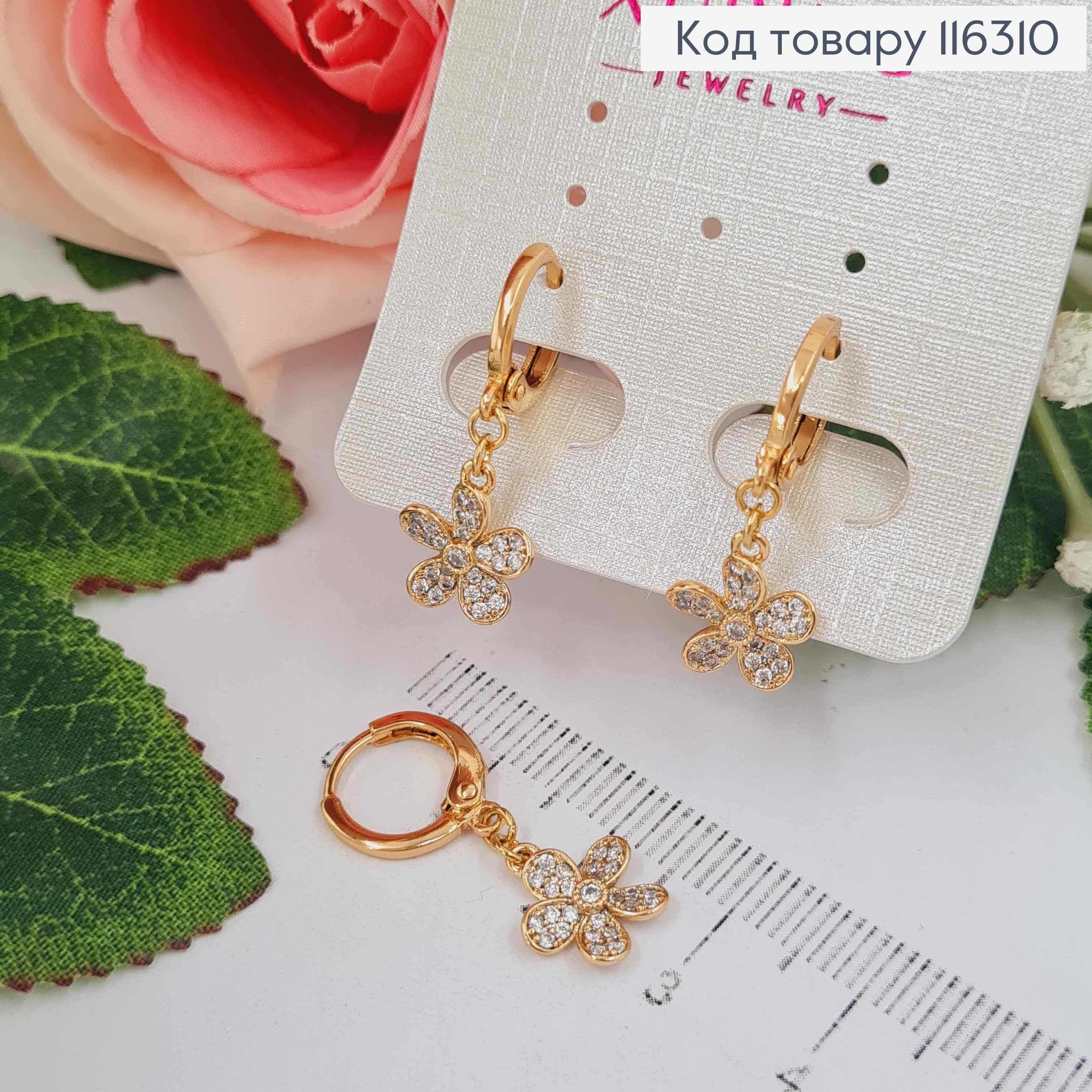 Серьги кольца 1см, с подвеской Цветочком в камешках, Xuping 18K
