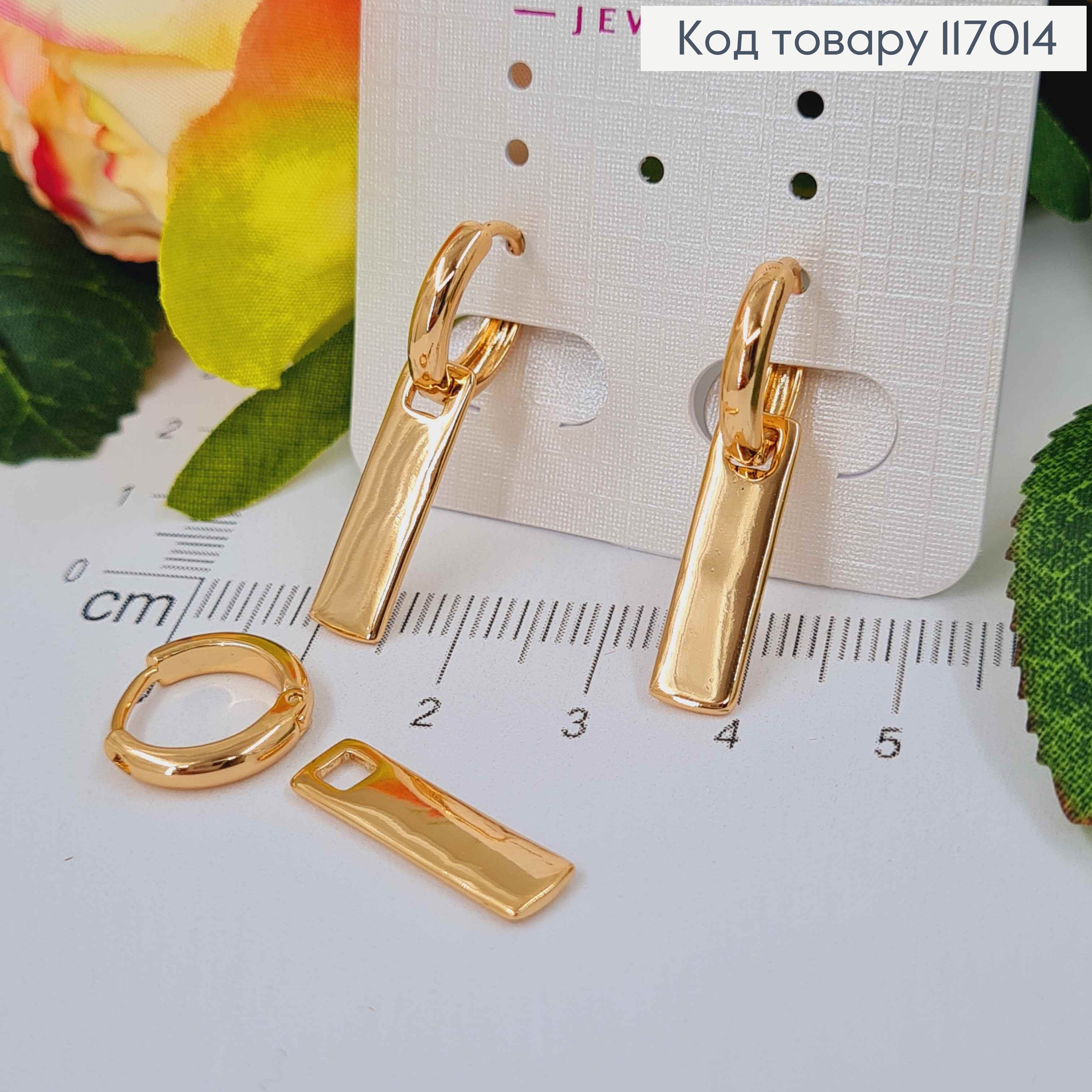 Серьги кольца 1см, с подвеской пластинкой, 1,8см, Xuping 18K