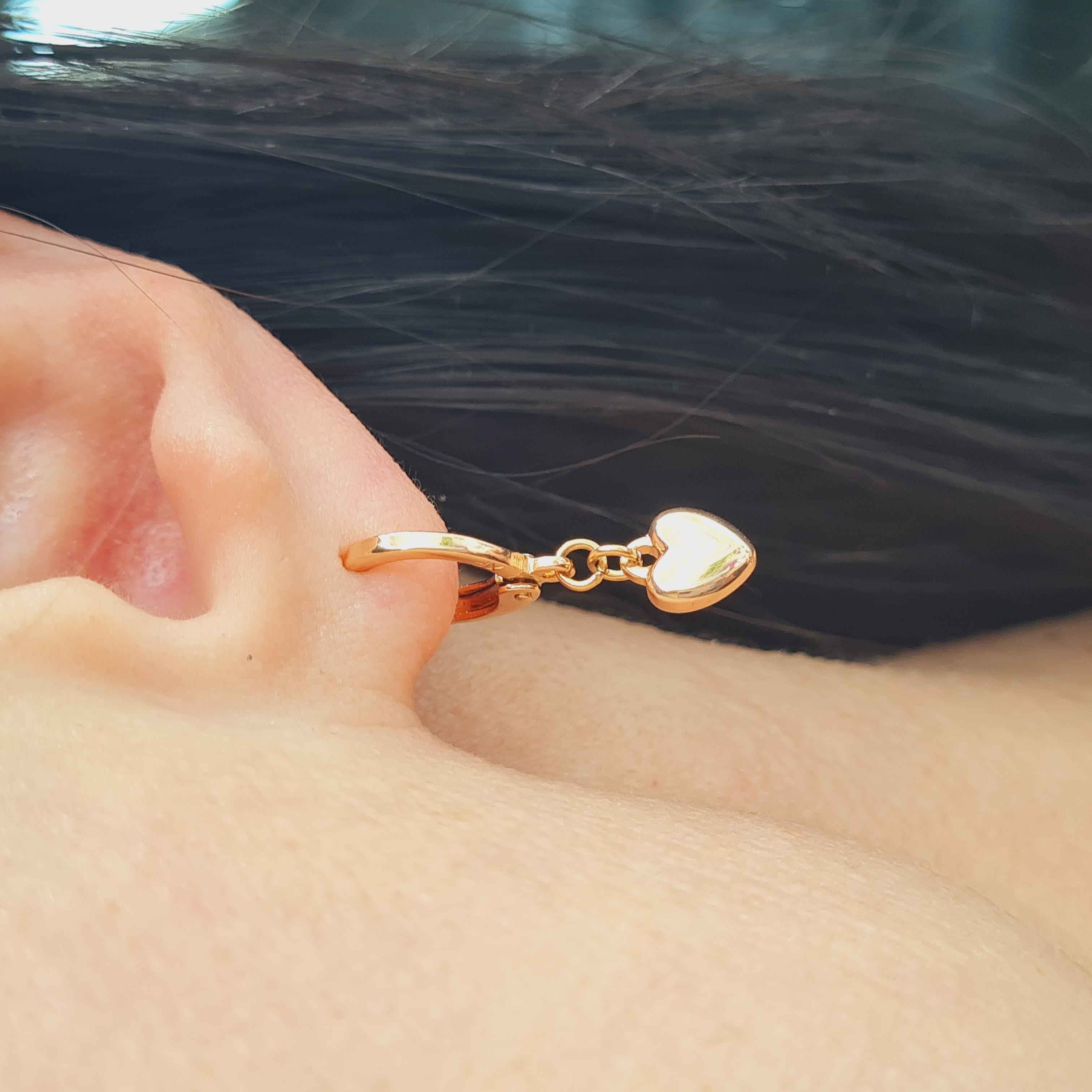 Серьги кольца 1см, с подвеской сердечком, Xuping 18K