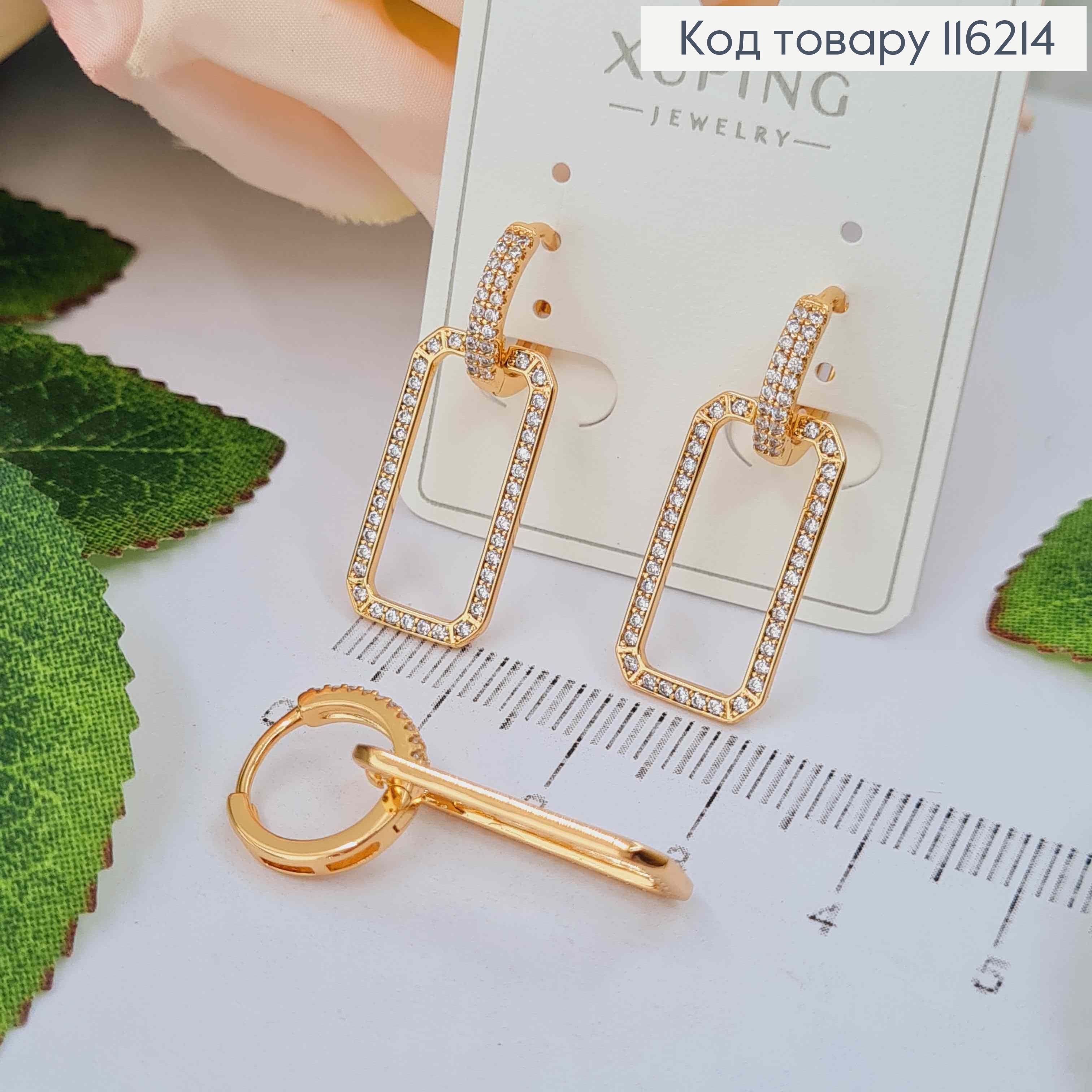 Серьги кольца 1см, с прямоугольными подвесками в камешках, Xuping 18K