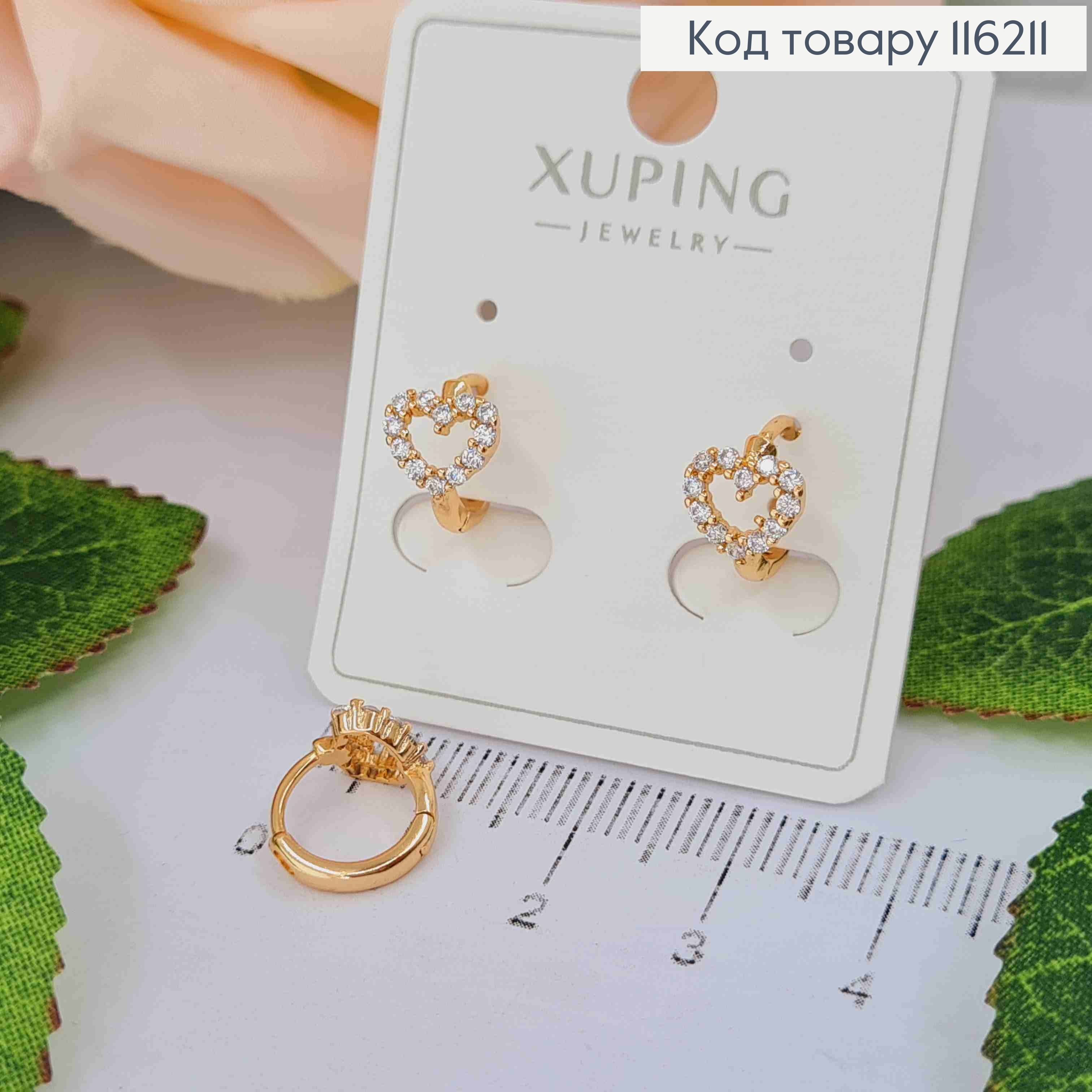 Серьги кольца 1см, с сердечком в камешках, Xuping 18K