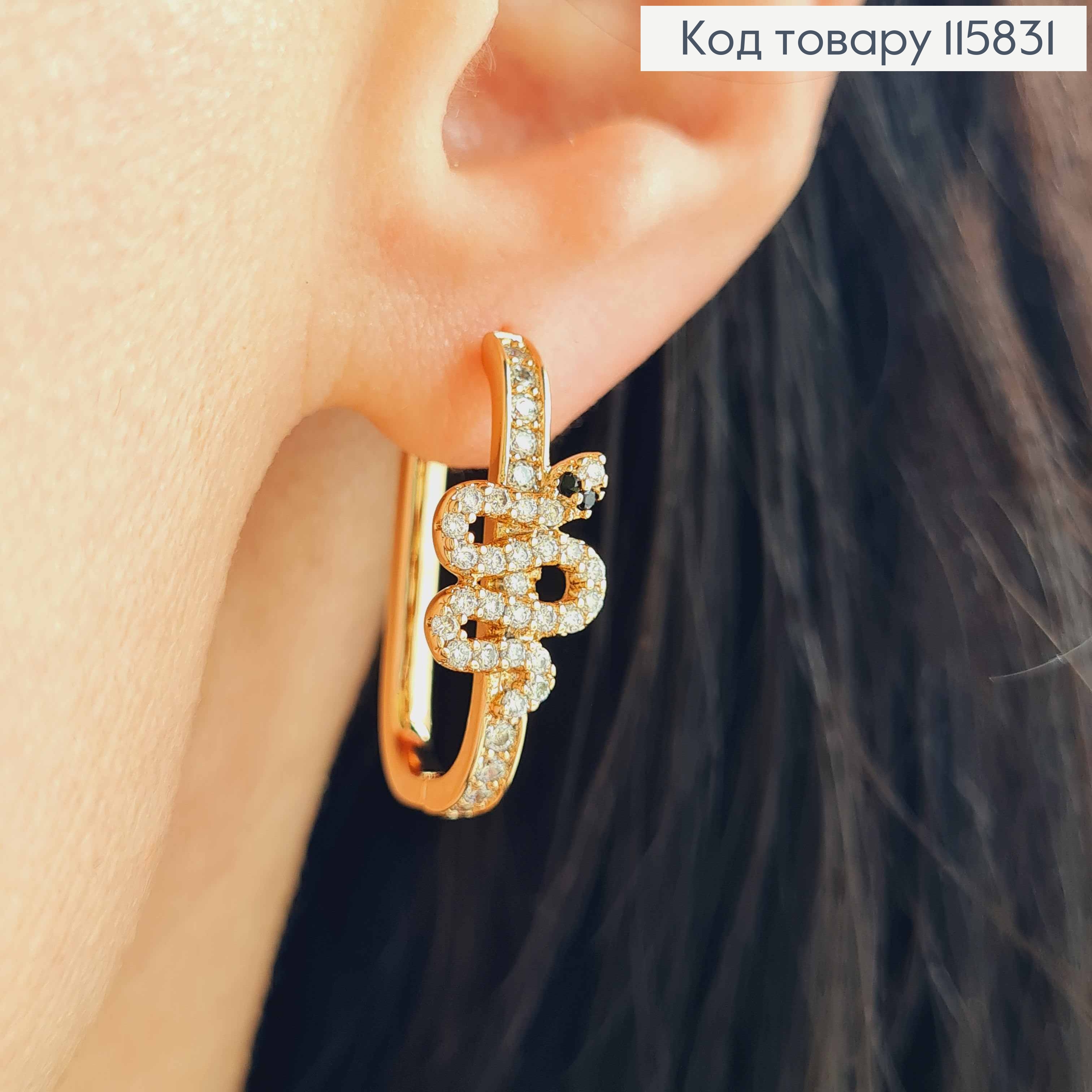 Серьги кольца 2см, "Змейка" с черными глазами, в камнях, Xuping 18K