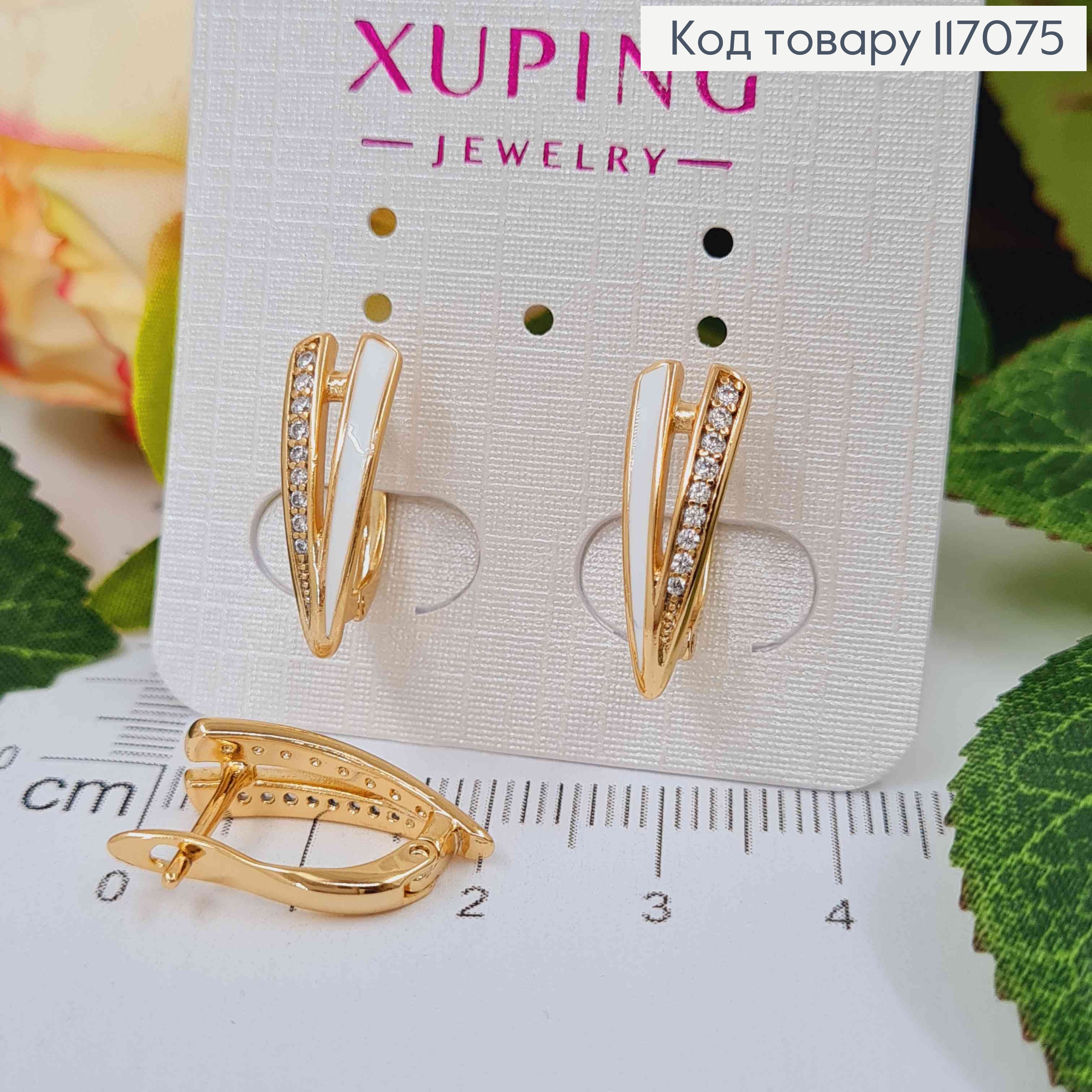 Серьги Стрелы, с белой эмалью и камешками, 1,8см, Xuping 18K