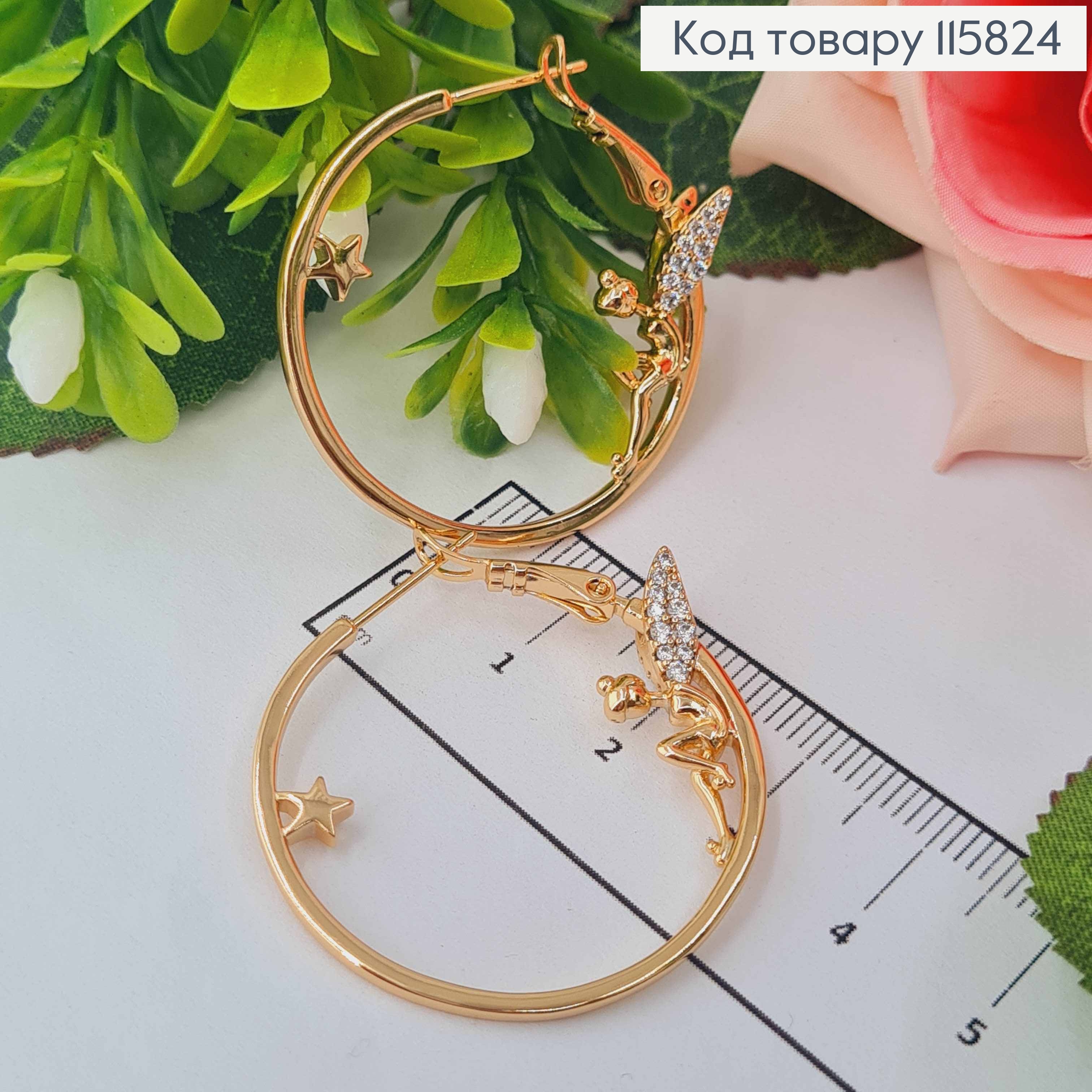Серьги кольца 3,5см, "Сказочные" с Феечкой и звездочками, Xuping 18K