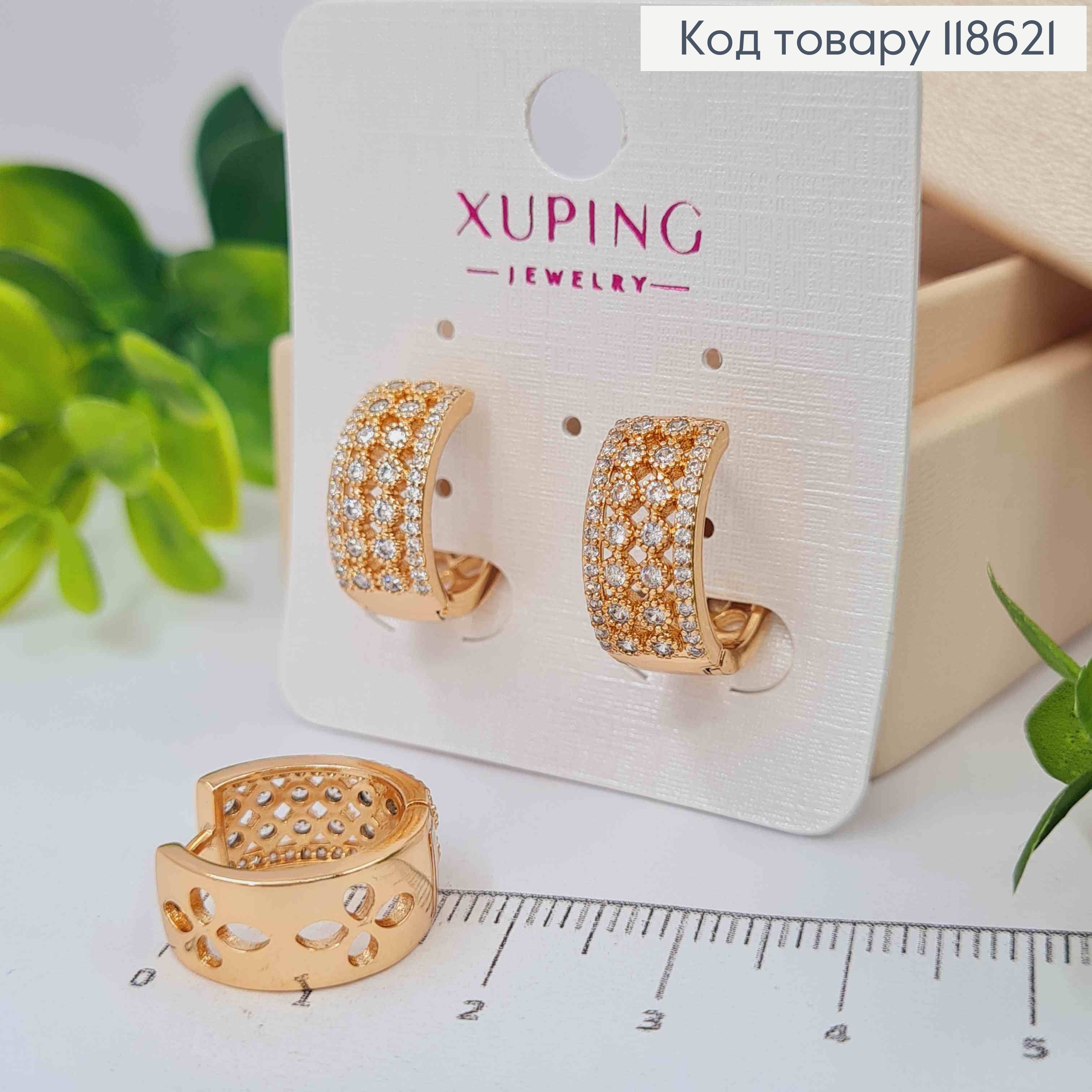 Серьги кольца "Ажурные" украшены Блестящими камешками, ширина 7мм, диаметр 1,7см, Xuping 18К.