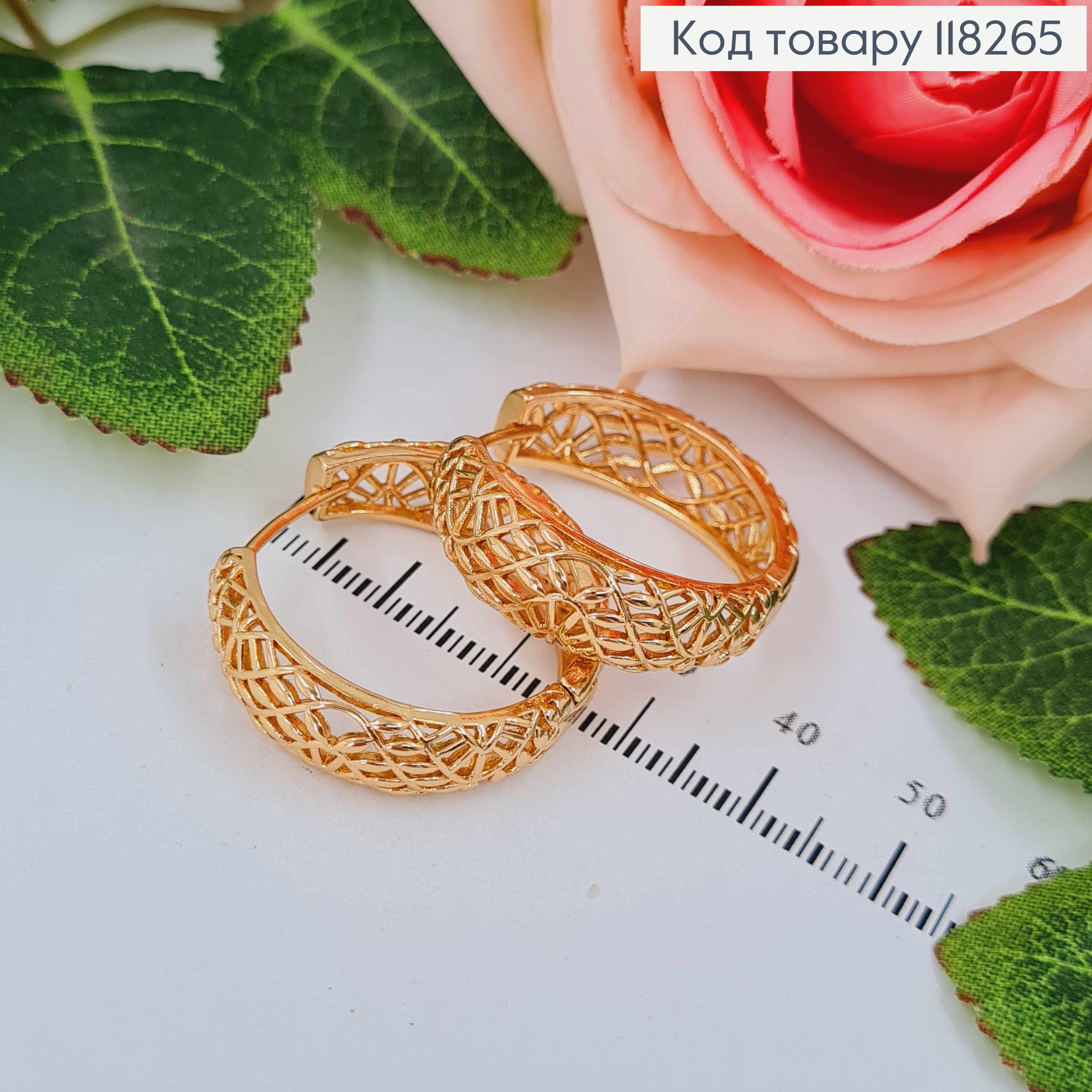 Серьги кольца "АЖУРНЫЕ" с имитацией Веточки, ширина 8мм, диаметр 3см, Xuping 18К