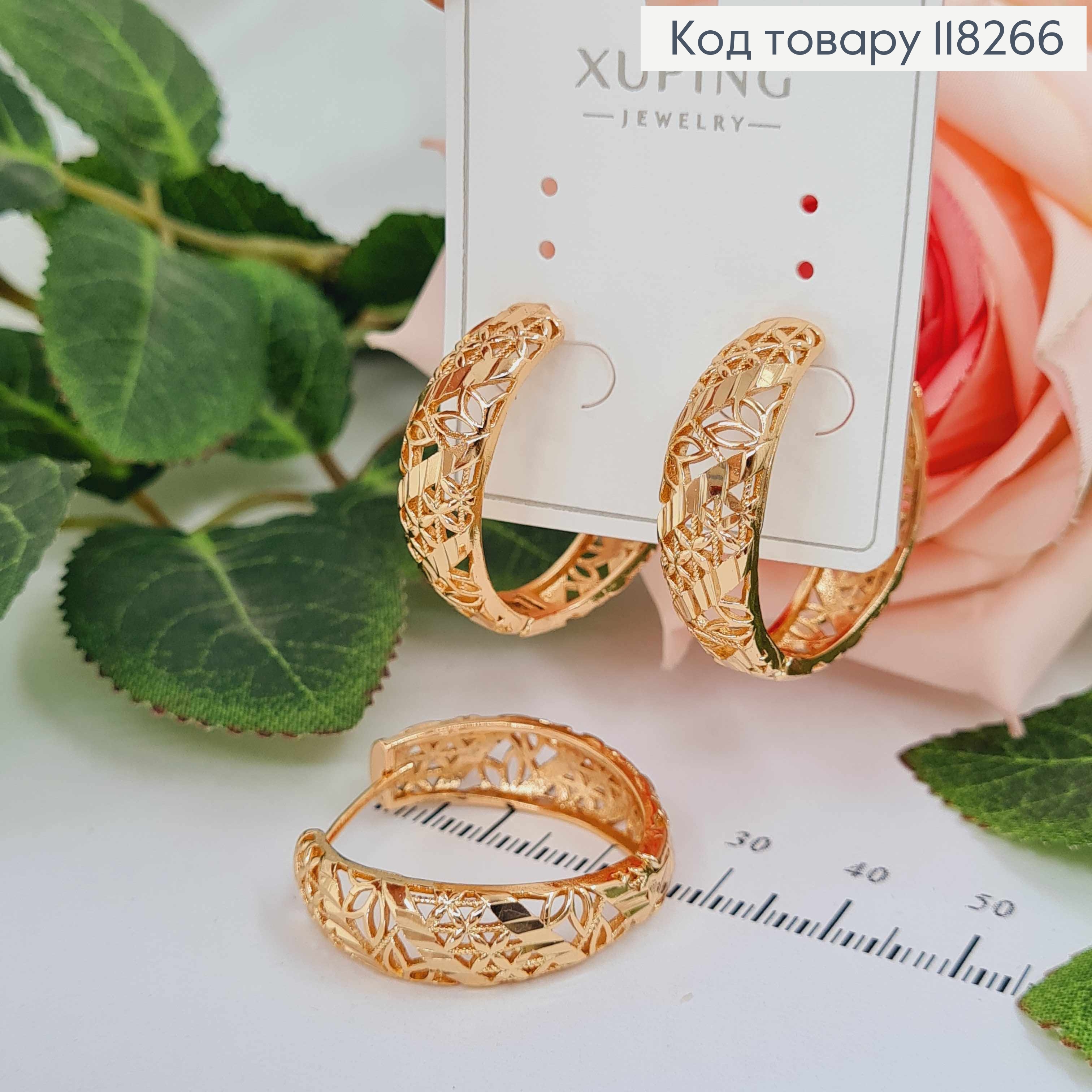 Серьги кольца "АЖУРНЫЕ" с имитацией Спирали с цветками, ширина 8мм, диаметр 3см, Xuping 18К