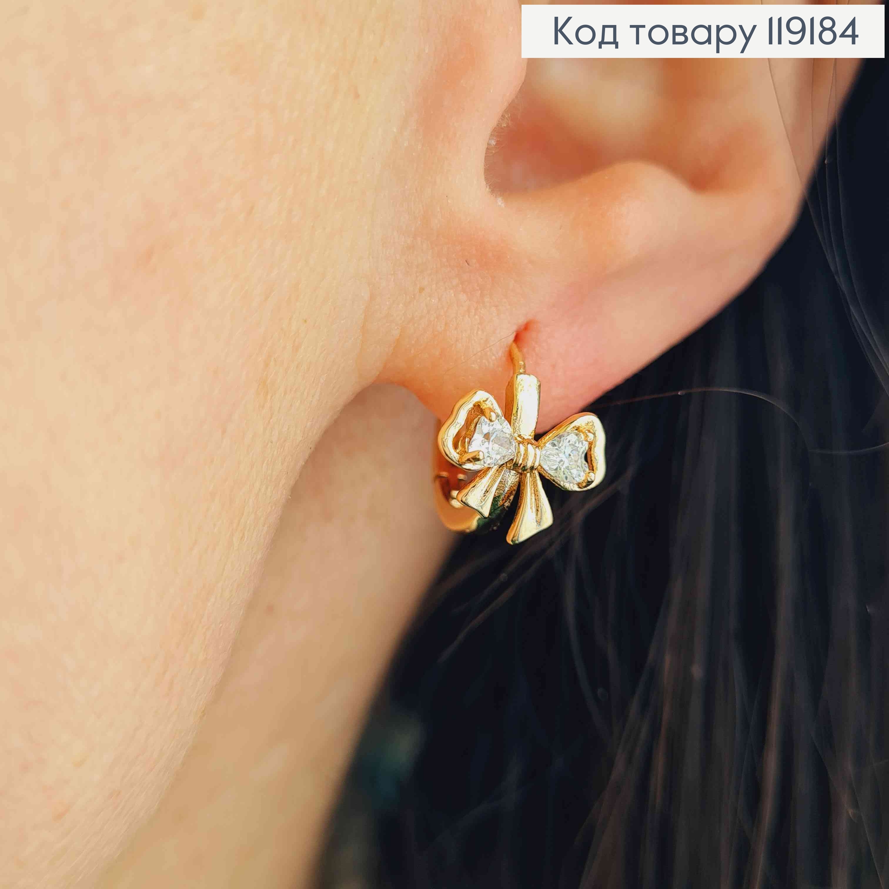 Серьги кольца "Бантик" с блестящими камешками, (0,9см), диаметр 1,2см, Xuping 18K