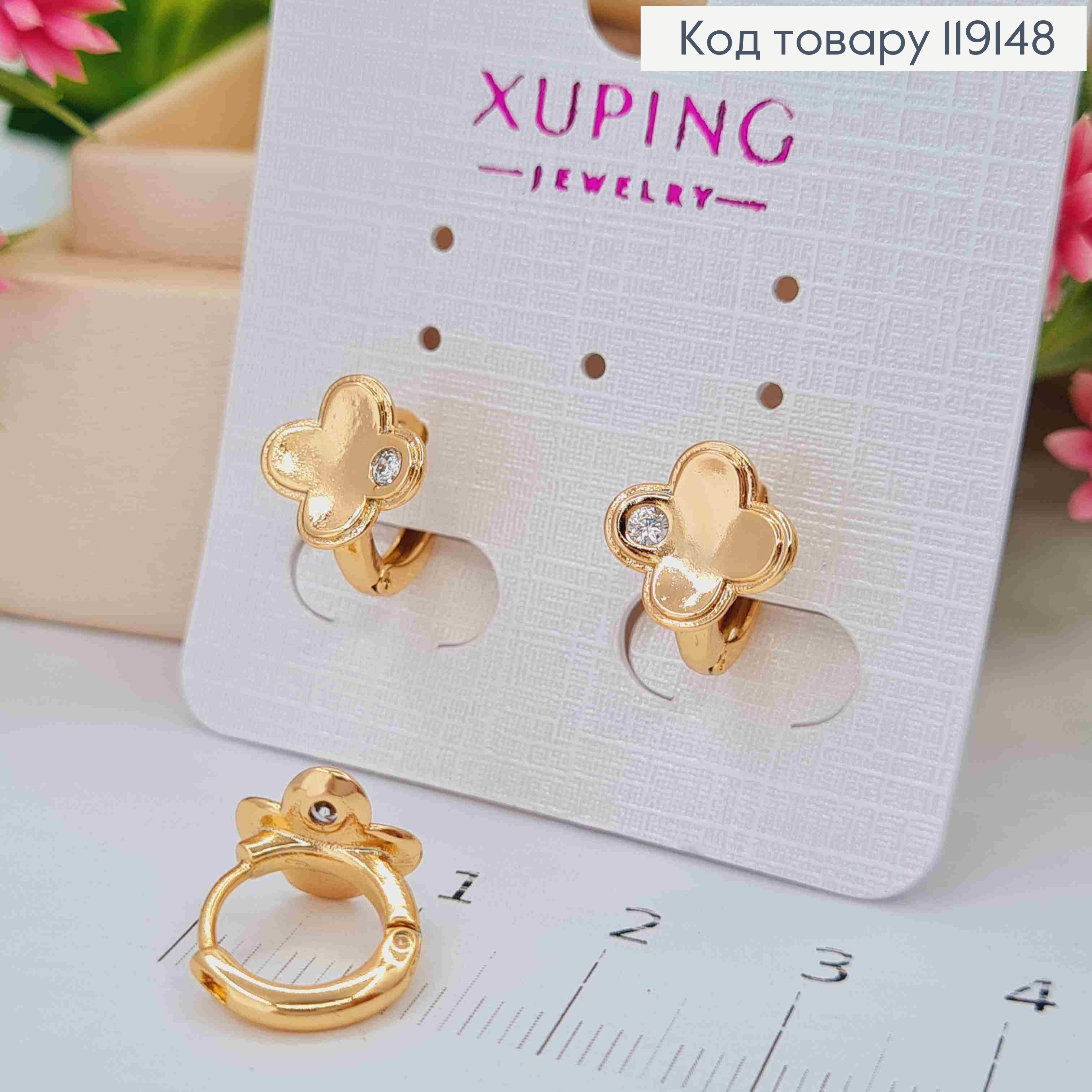 Серьги кольца, "Четырехлистник" с камешком, 1,1см, Xuping 18К