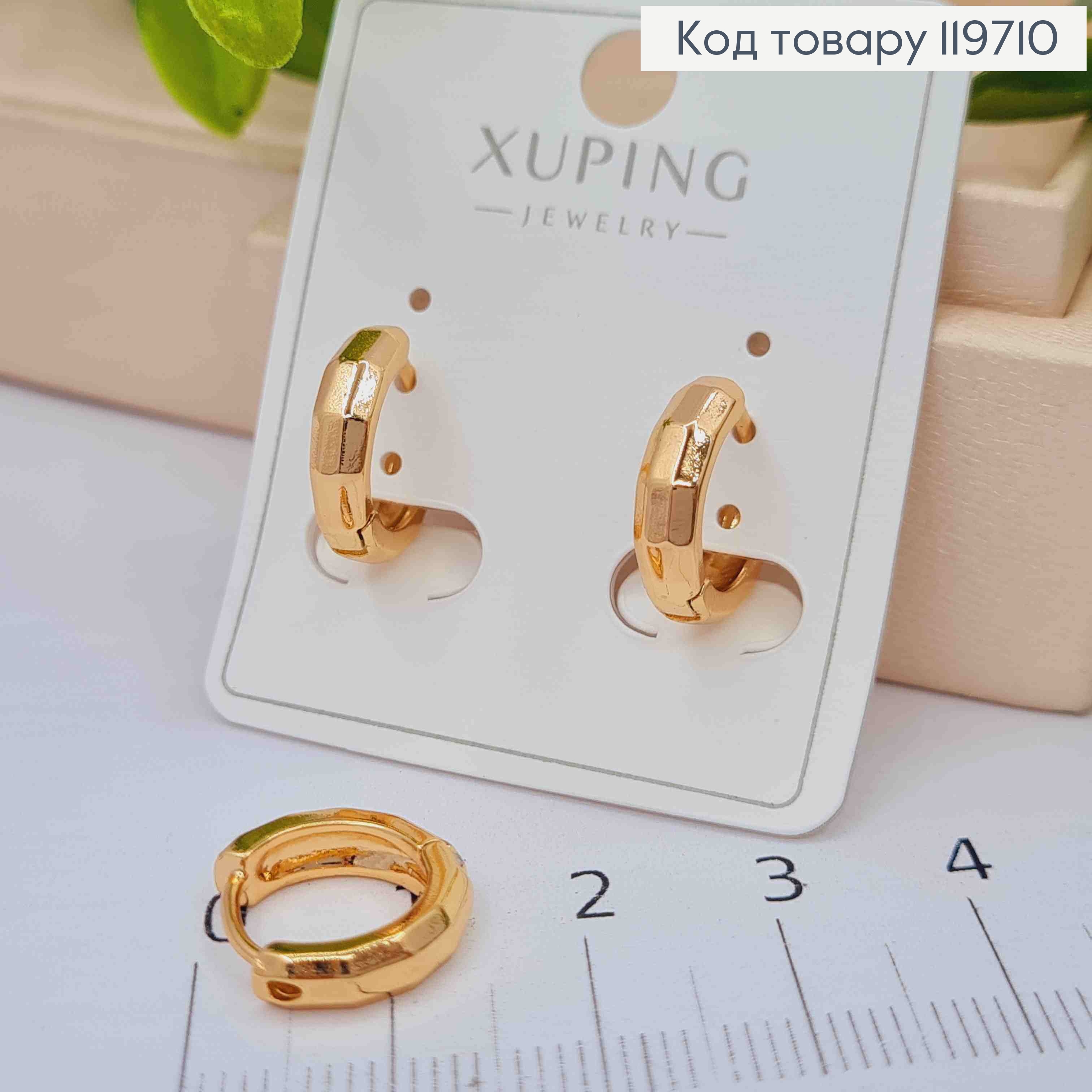 Серьги кольца "Граненые", ширина 0,4см, диаметр 1,4см, Xuping 18К
