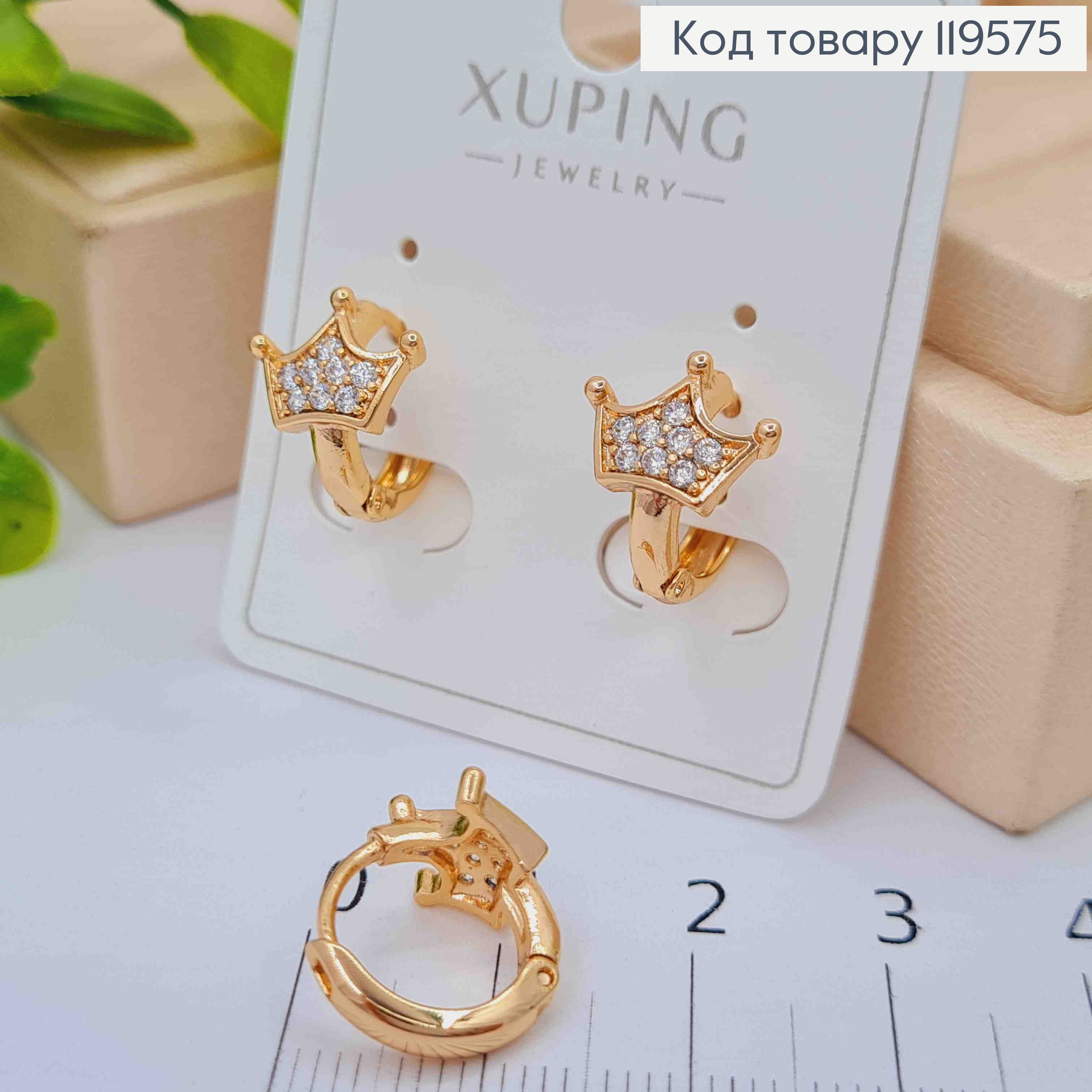 Серьги кольца "Корона" с Блестящими камешками, диаметр 1,2см, Xuping 18К