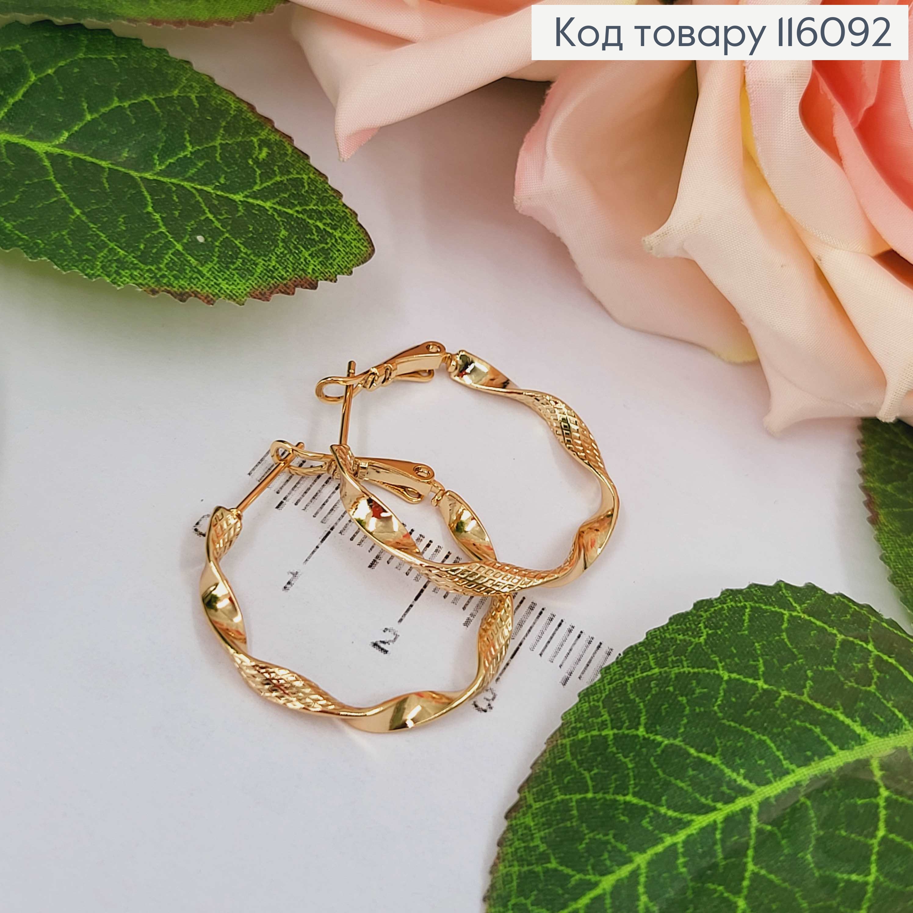 Серьги кольца, витые с резьбой, диам. 3см, Xuping 18K
