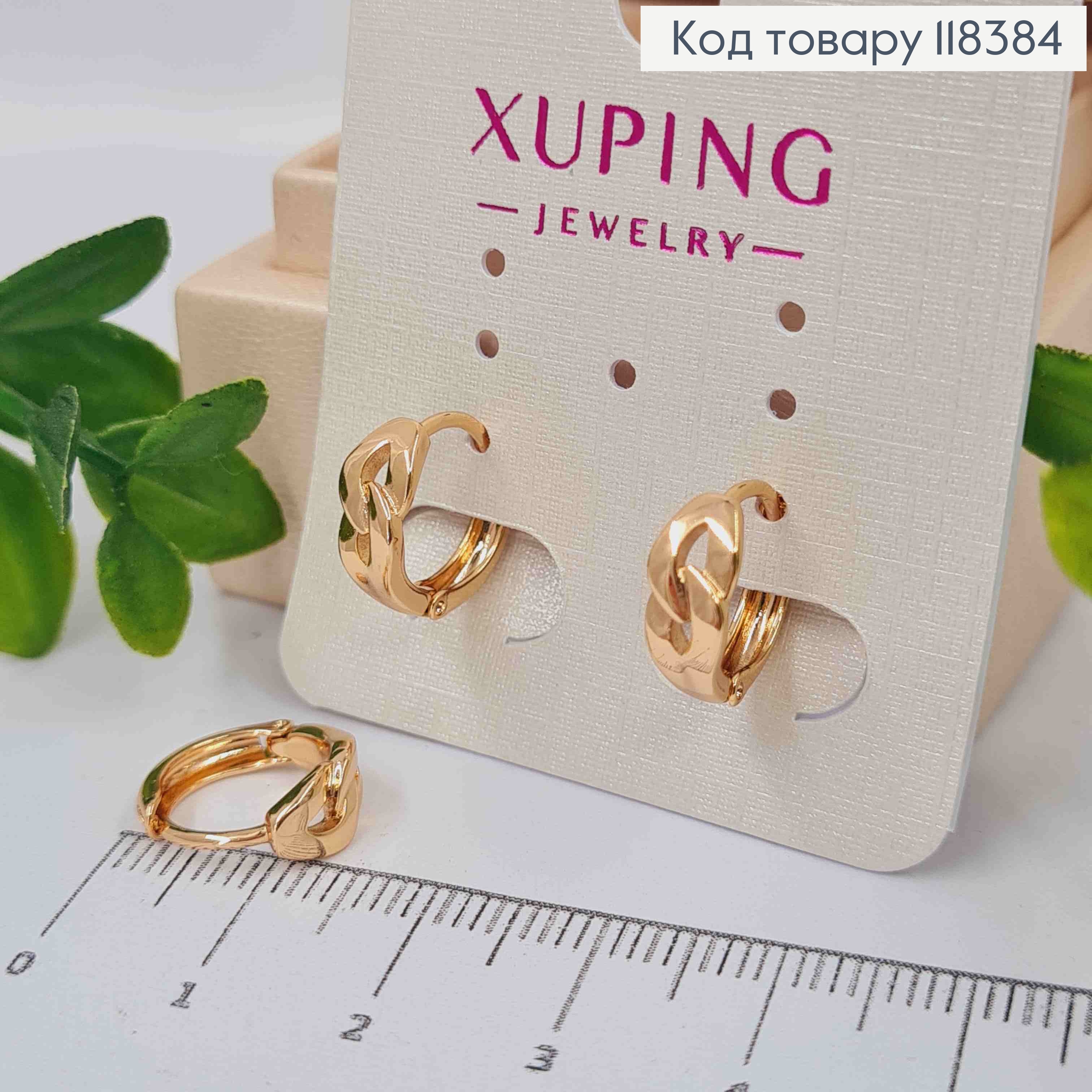 Серьги кольца "Звенья", диаметр 1,3см, Xuping 18К