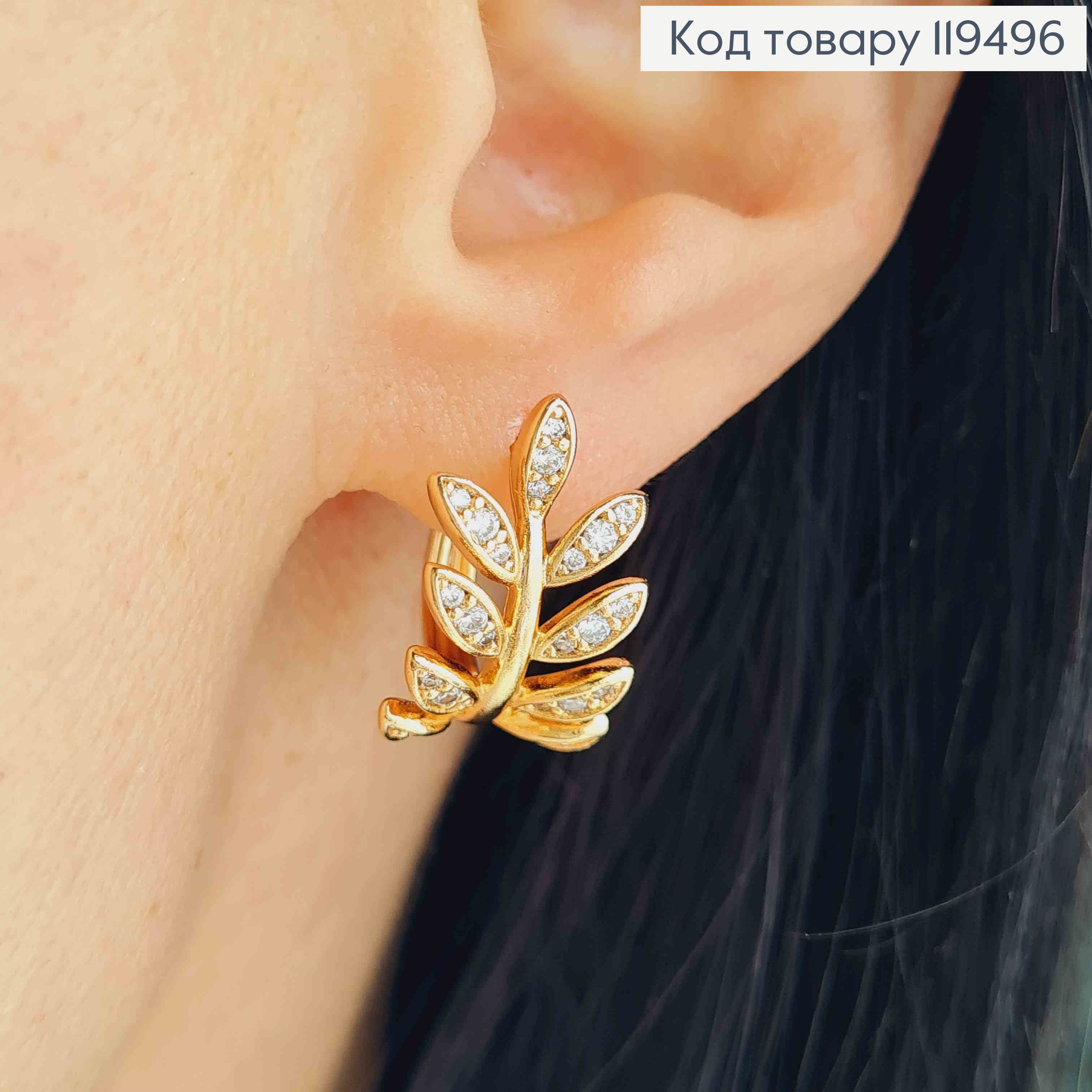 Серьги кольца "Лавровая Веточка" с Блестящими камешками, диаметр 1,5см, Xuping 18K