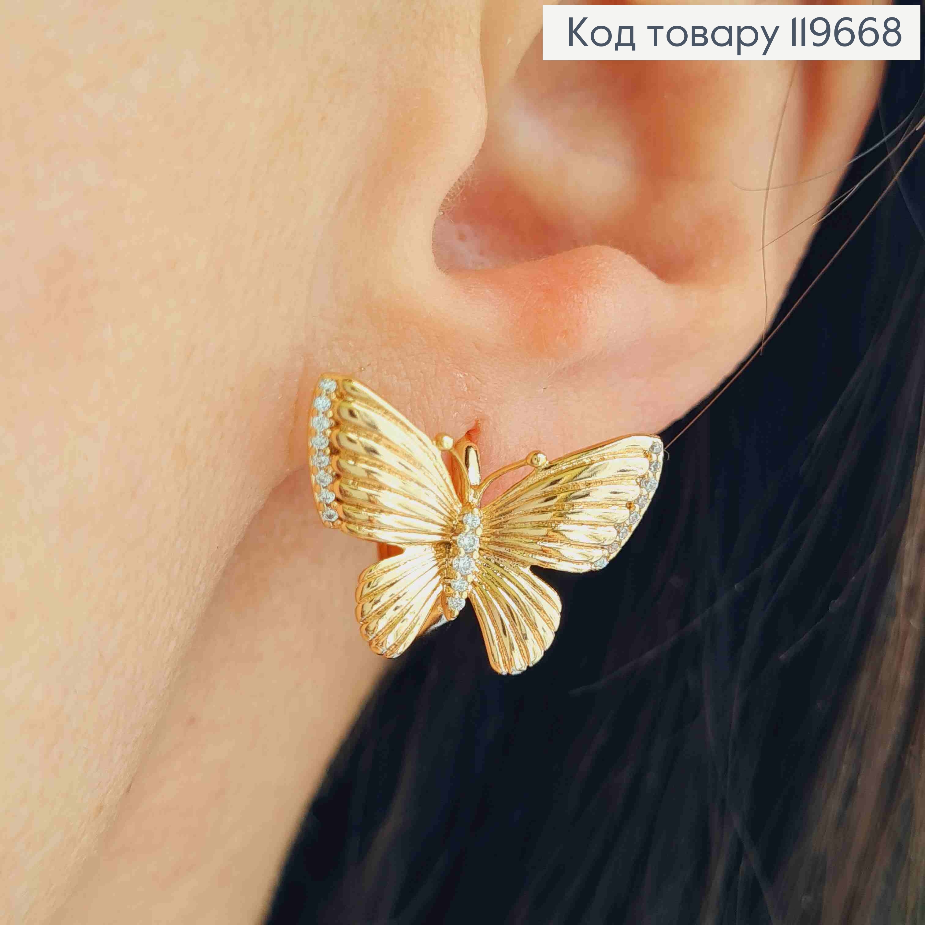 Серьги кольца "Бабочка" (1,4см) с Блестящими камешками, диаметр 1,2см, Xuping 18К