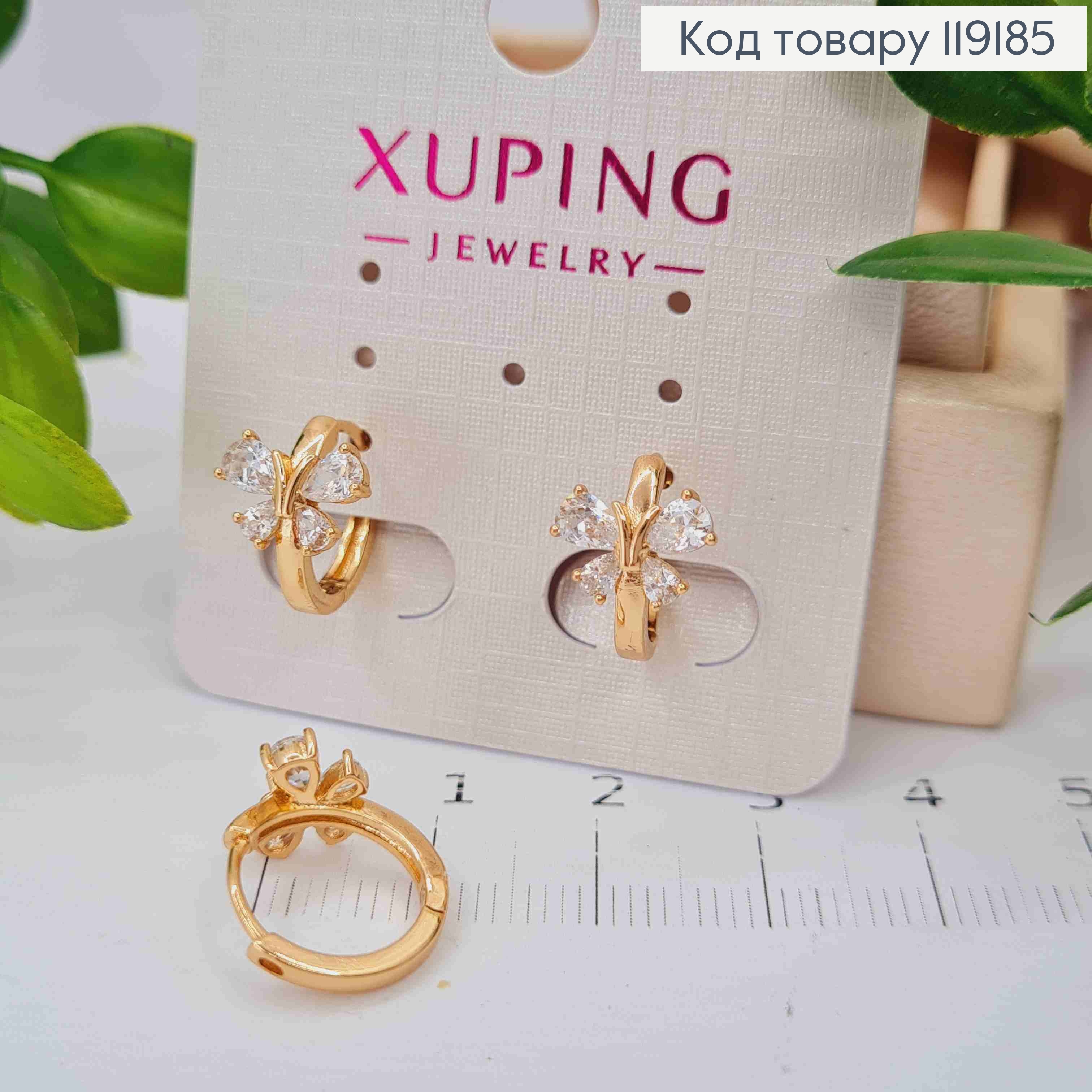 Серьги кольца "Бабочка" из Блестящих камешков, (0,7см), диаметр 1,2см, Xuping 18K