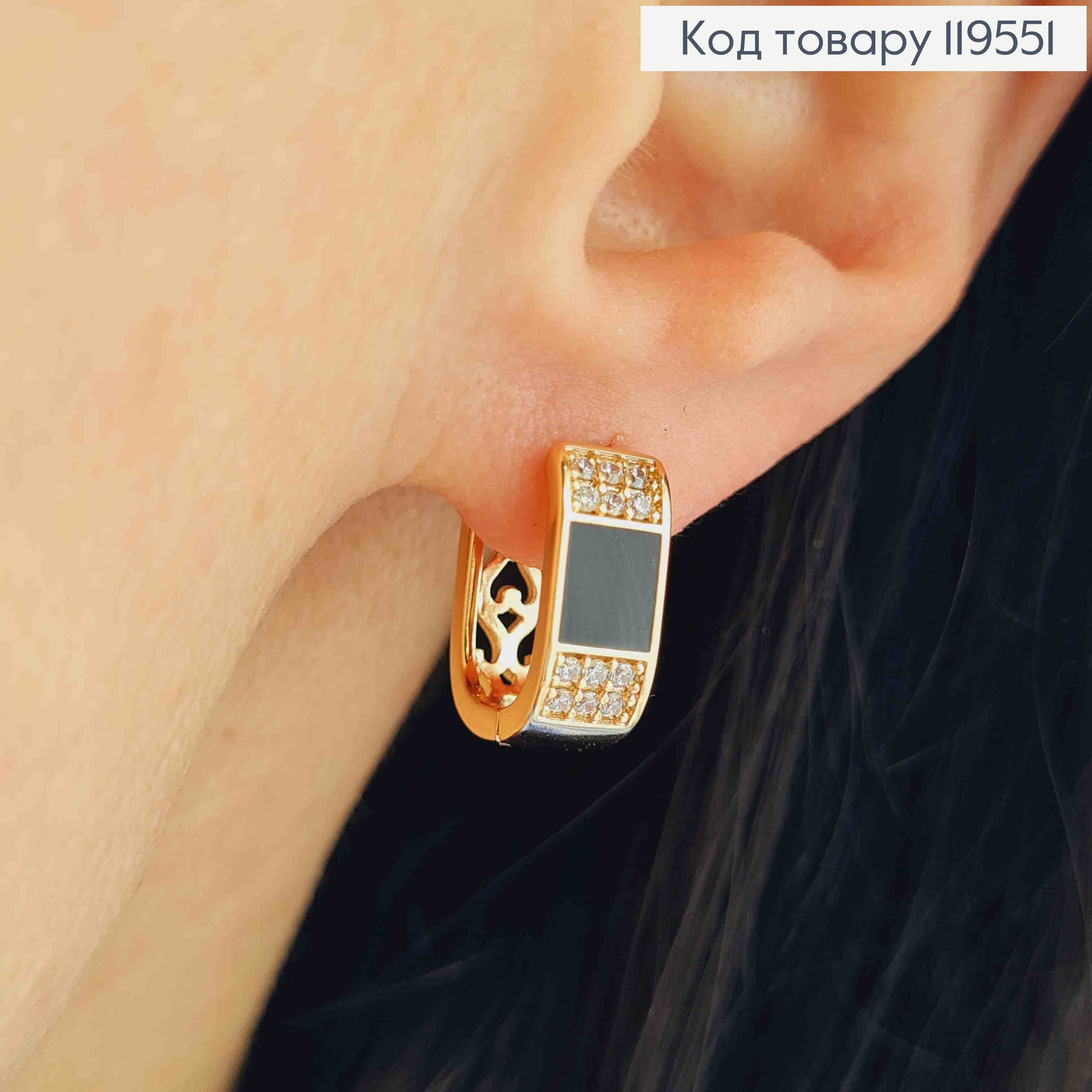 Серьги кольца "Овальные" с Черной эмалью и Блестящими камешками, шир 6мм, дл. 1,5см, Xuping 18K