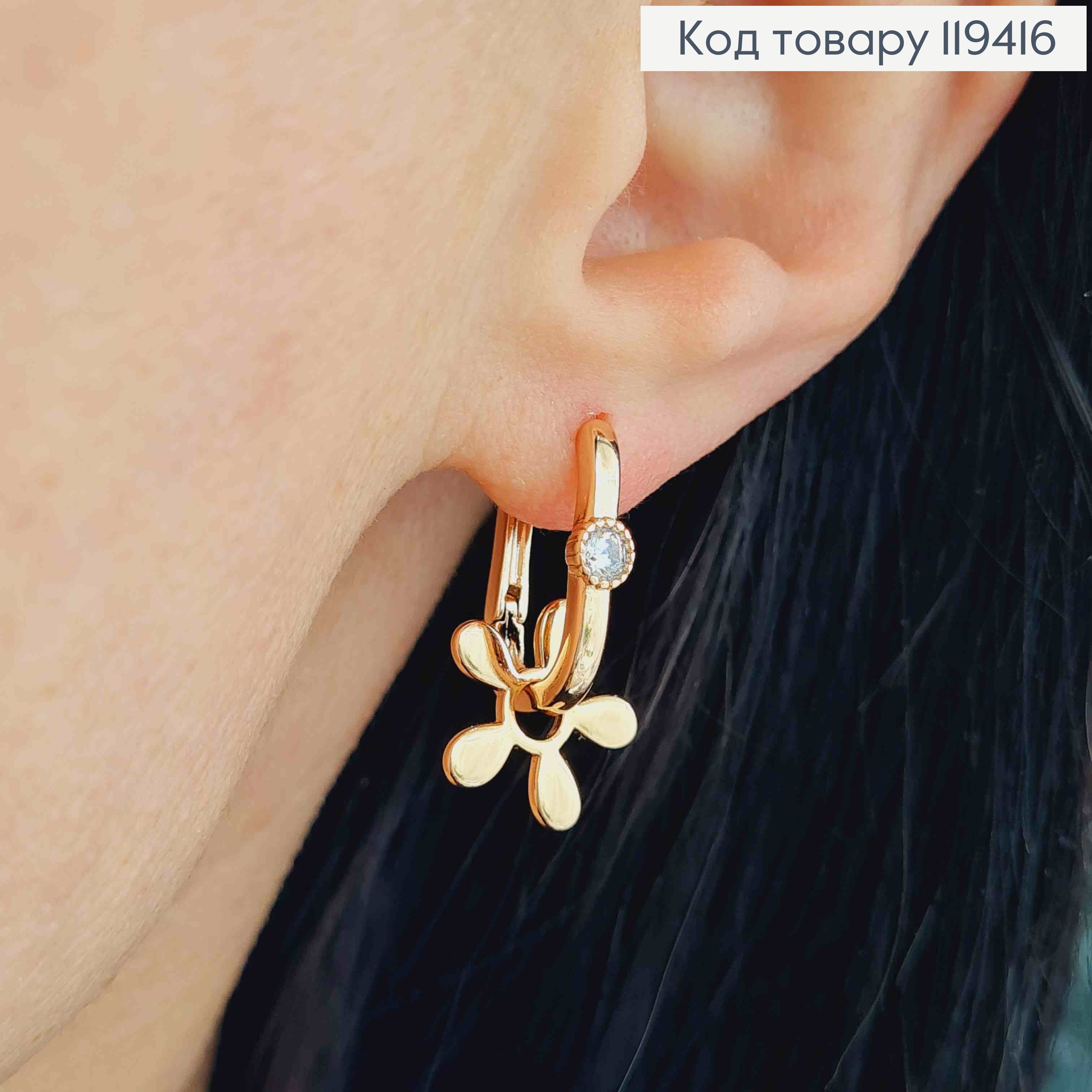 Серьги кольца "Овальные" с подвижным цветочком и камнем, длина 1,7см, Xuping 18К