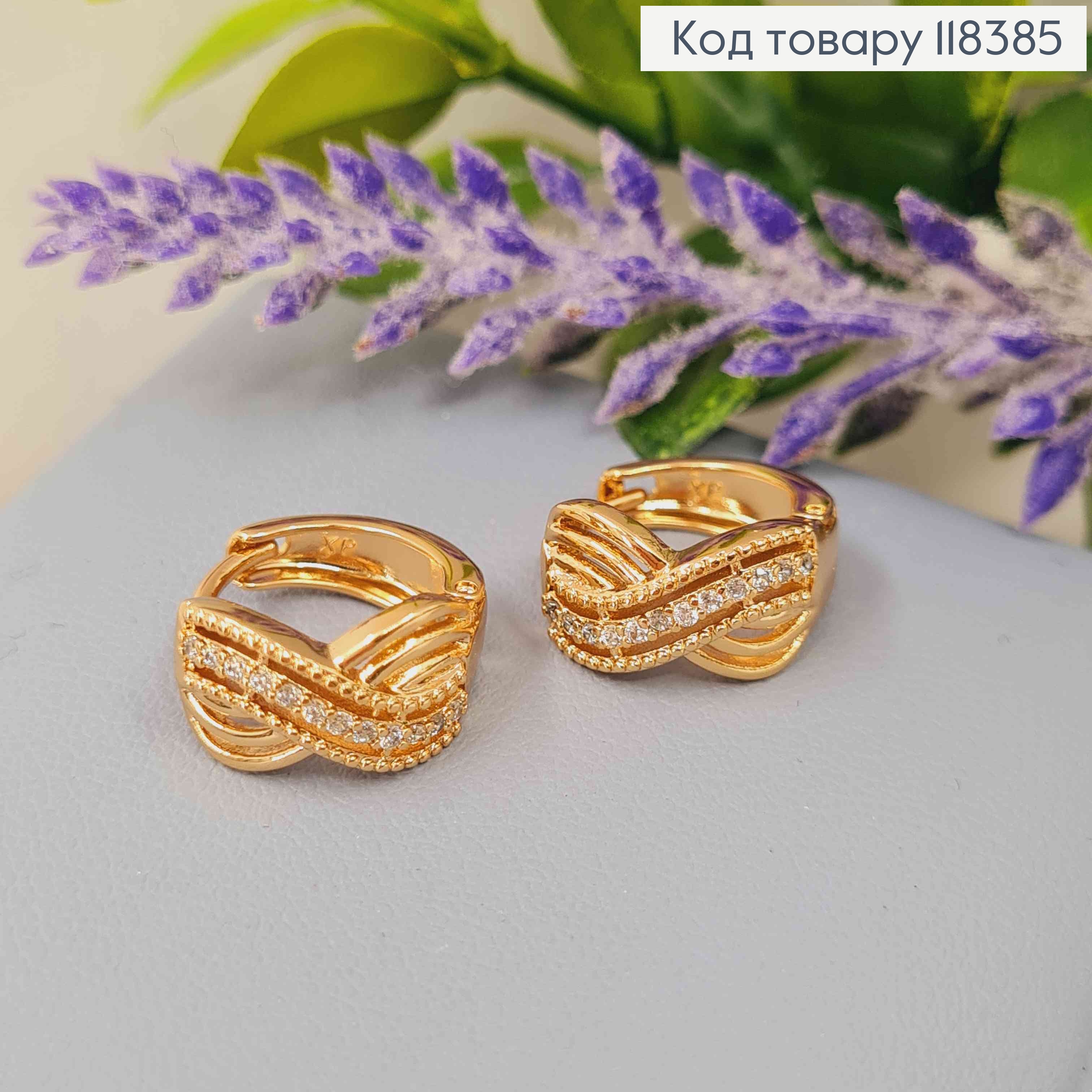 Серьги "Бесконечность" с Блестящими камешками, длина 1,6см, английская застежка, Xuping 18К 110207 фото
