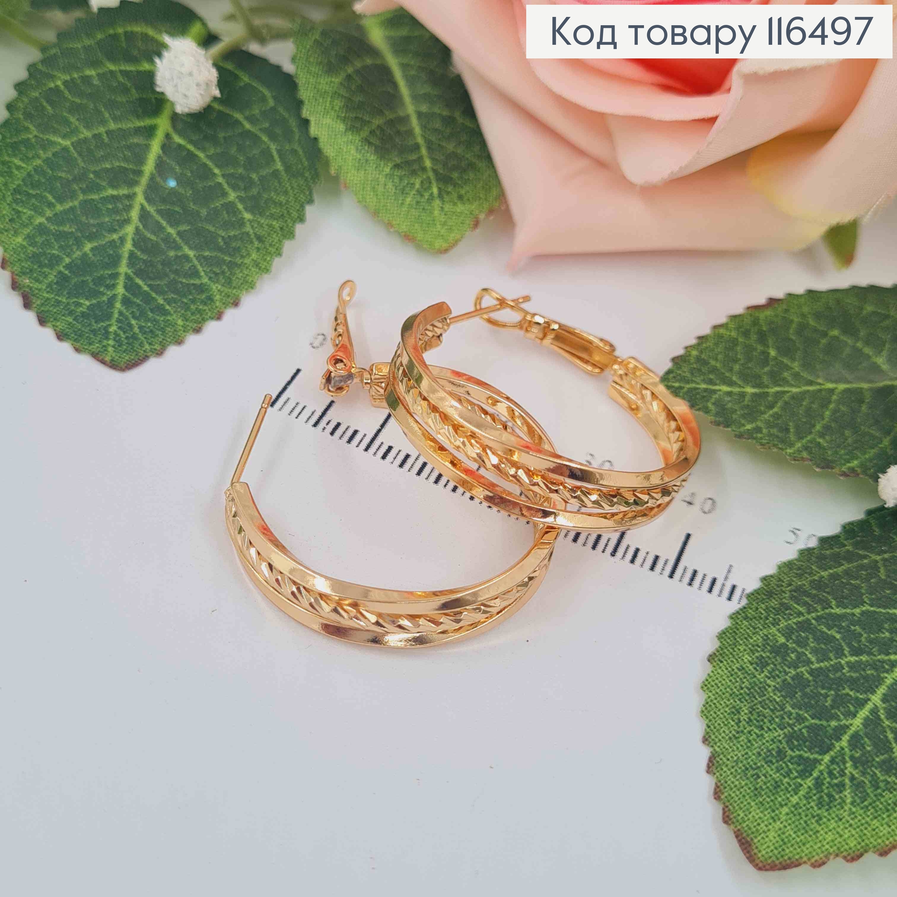 Серьги кольца, тройные, с резьбой, 3см. Xuping 18К