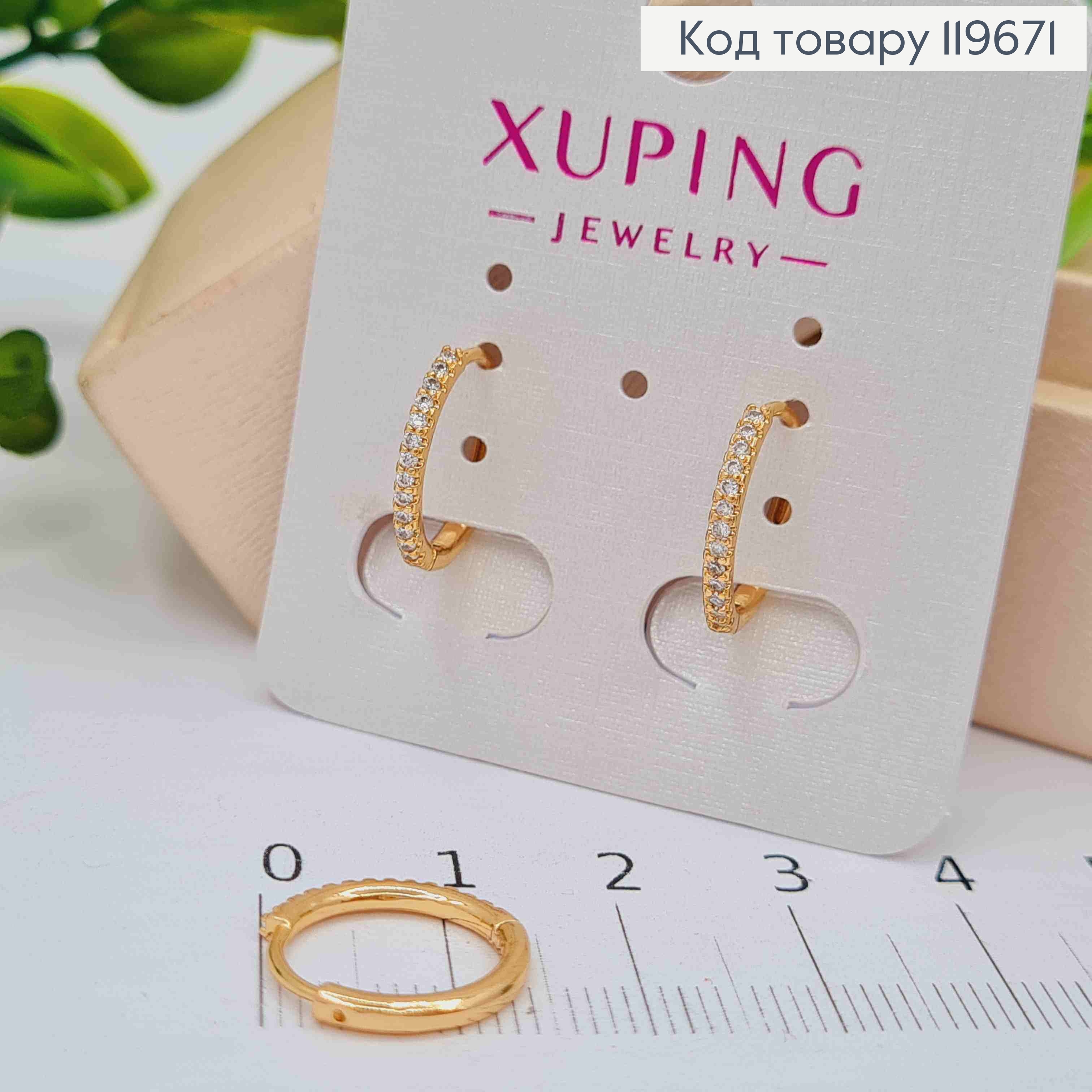 Серьги кольца "Овальные" украшены Блестящими камешками, ширина 7мм, длина 1,7см, Xuping 18К. 110198 фото