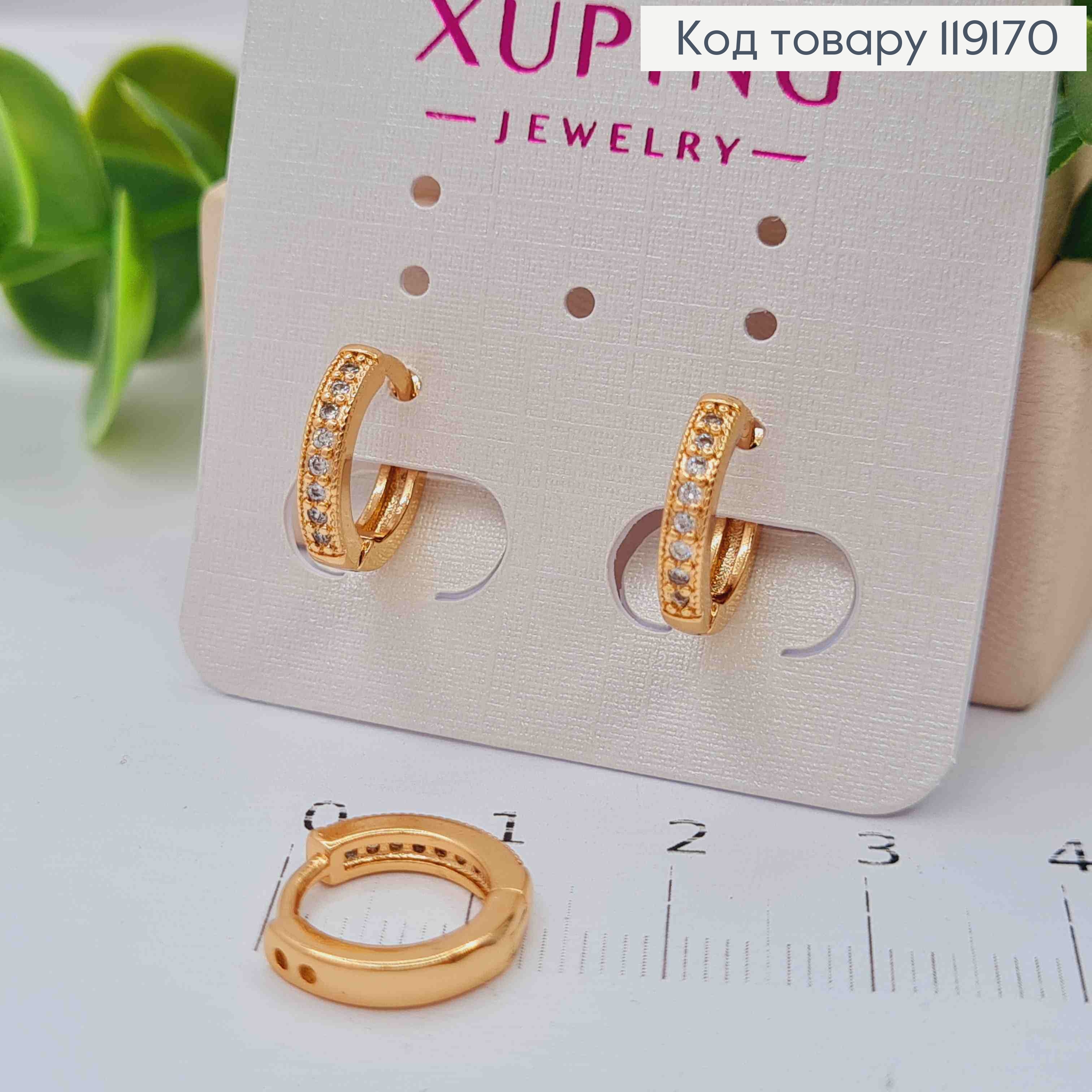 Серьги кольца украшены Блестящими камешками, диаметр 1,2см, XUPING 18К