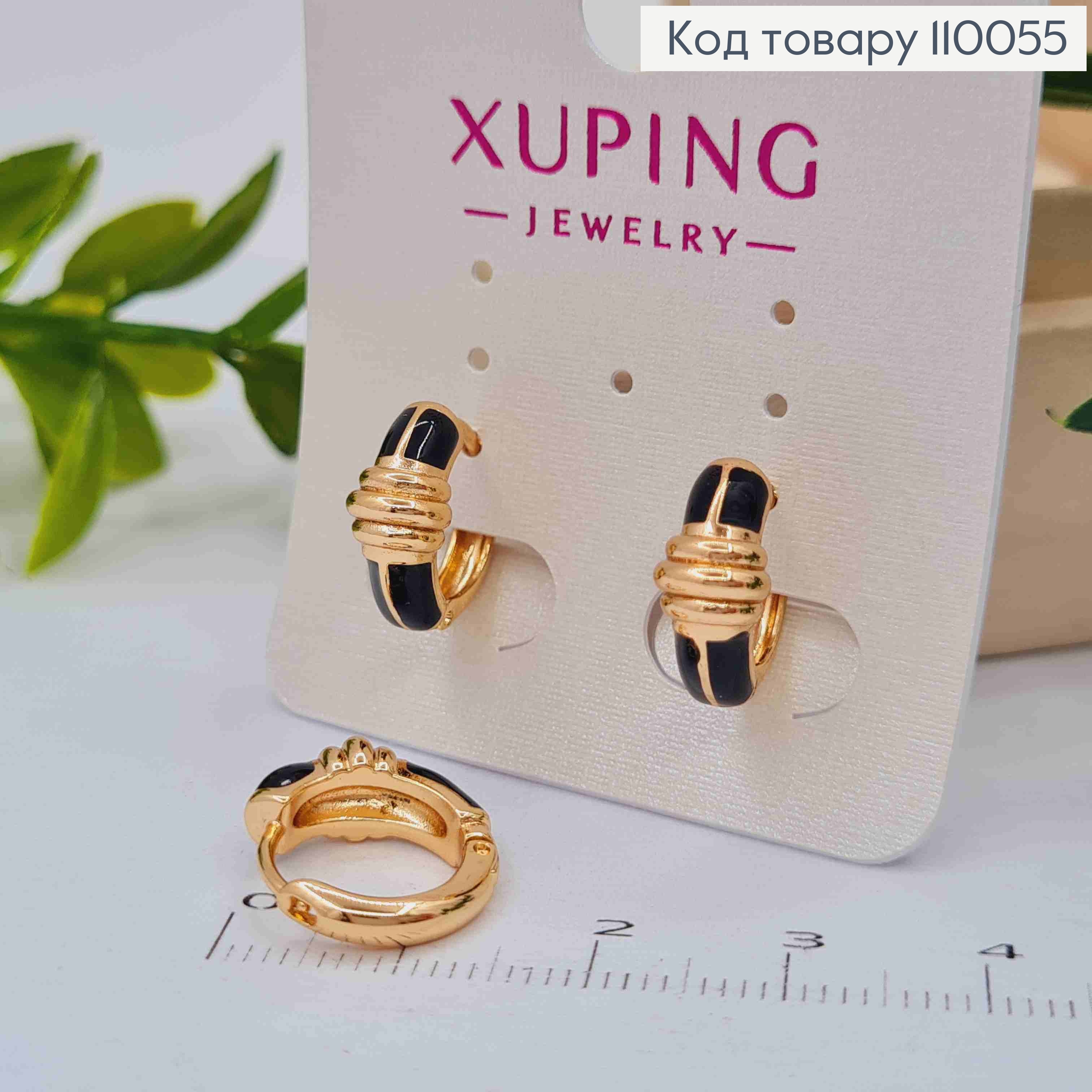 Серьги кольца украшены Черной эмалью, диаметр 1,3см, Xuping 18K