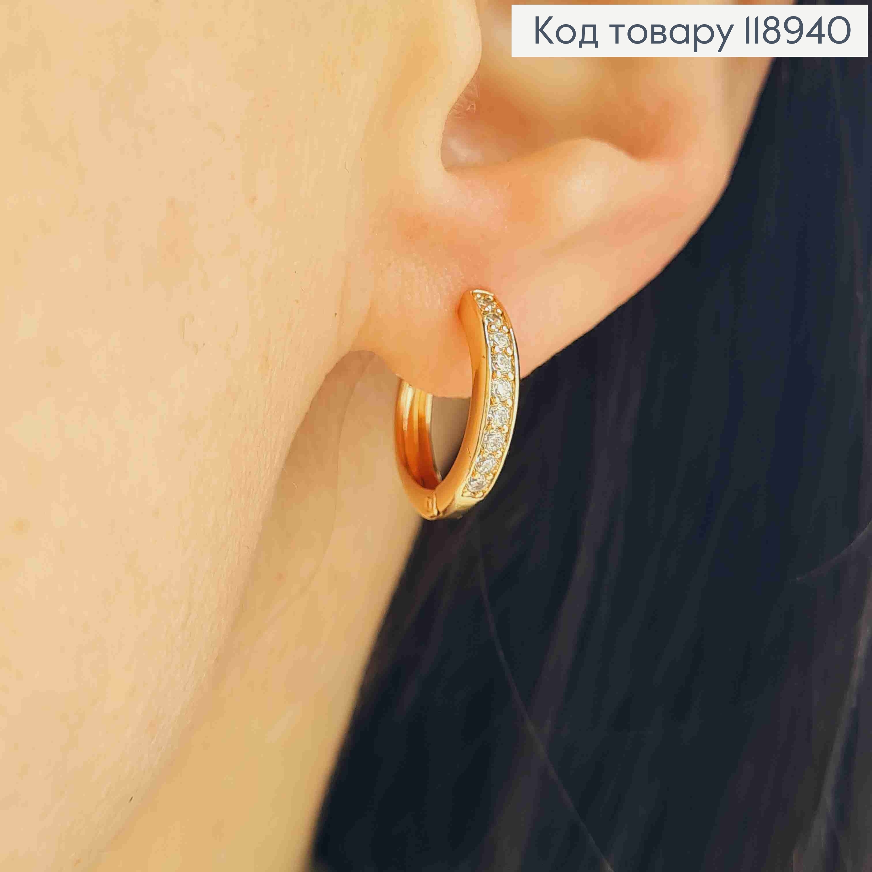 Серьги кольца "Овальные" украшены Блестящими камешками, ширина 7мм, длина 1,7см, Xuping 18К. 110198 фото