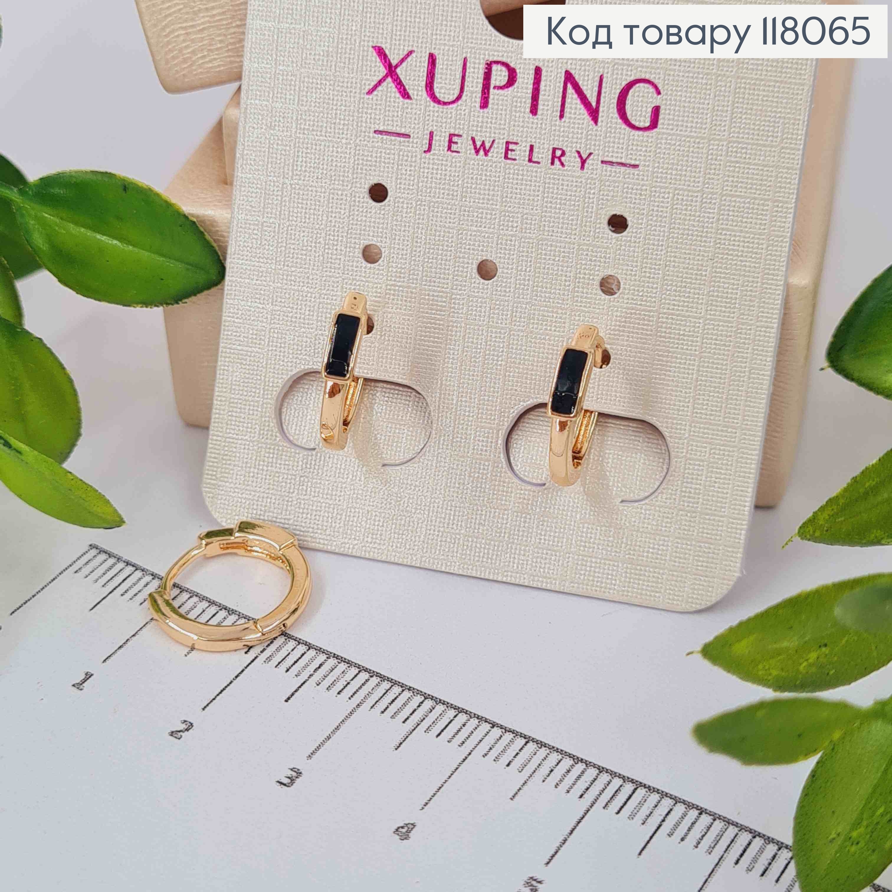 Серьги кольца с черным камешком, диаметр 1,3см, Xuping 18К.