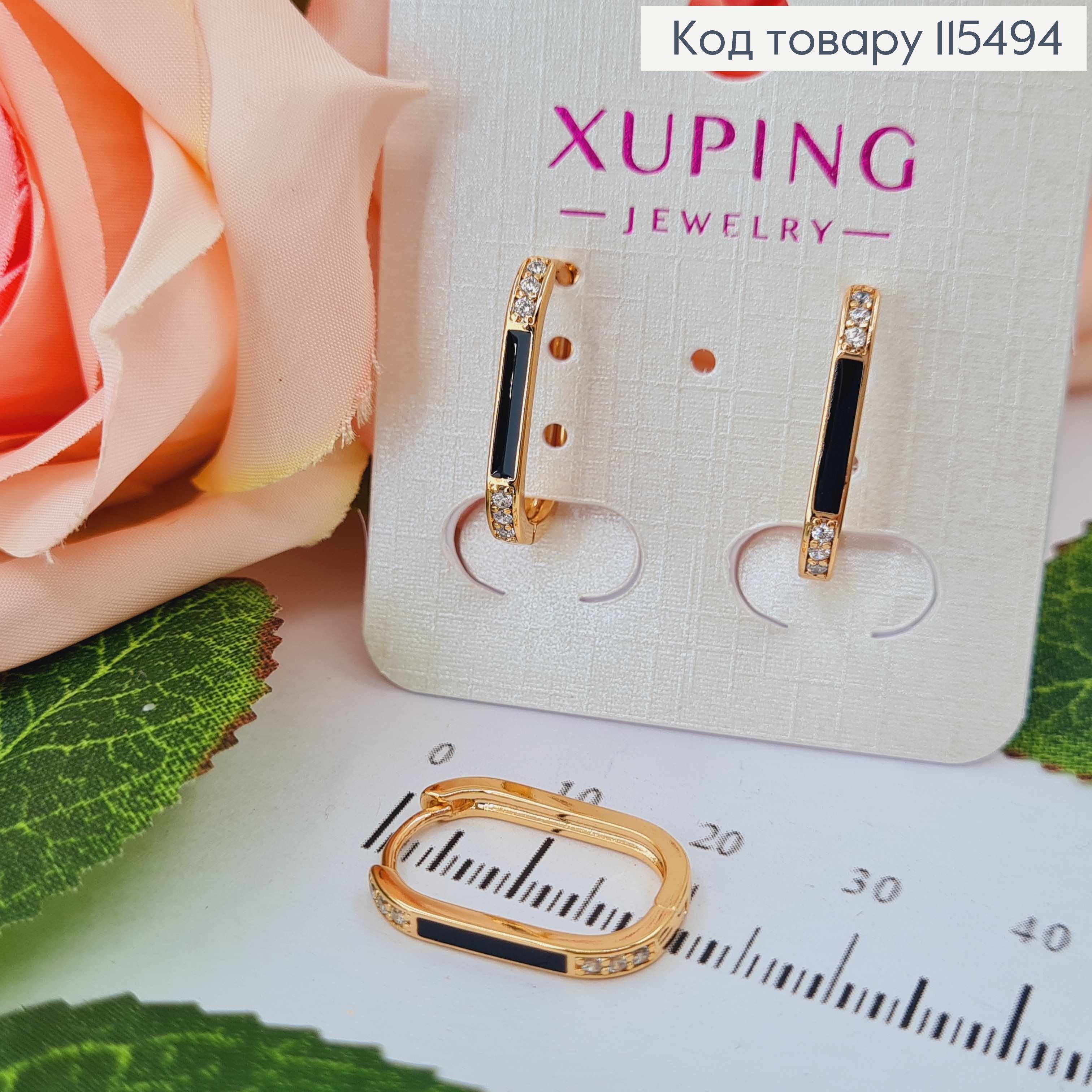 Серьги кольца продолговатые 2см, с черной эмалью и камешками Xuping 18K