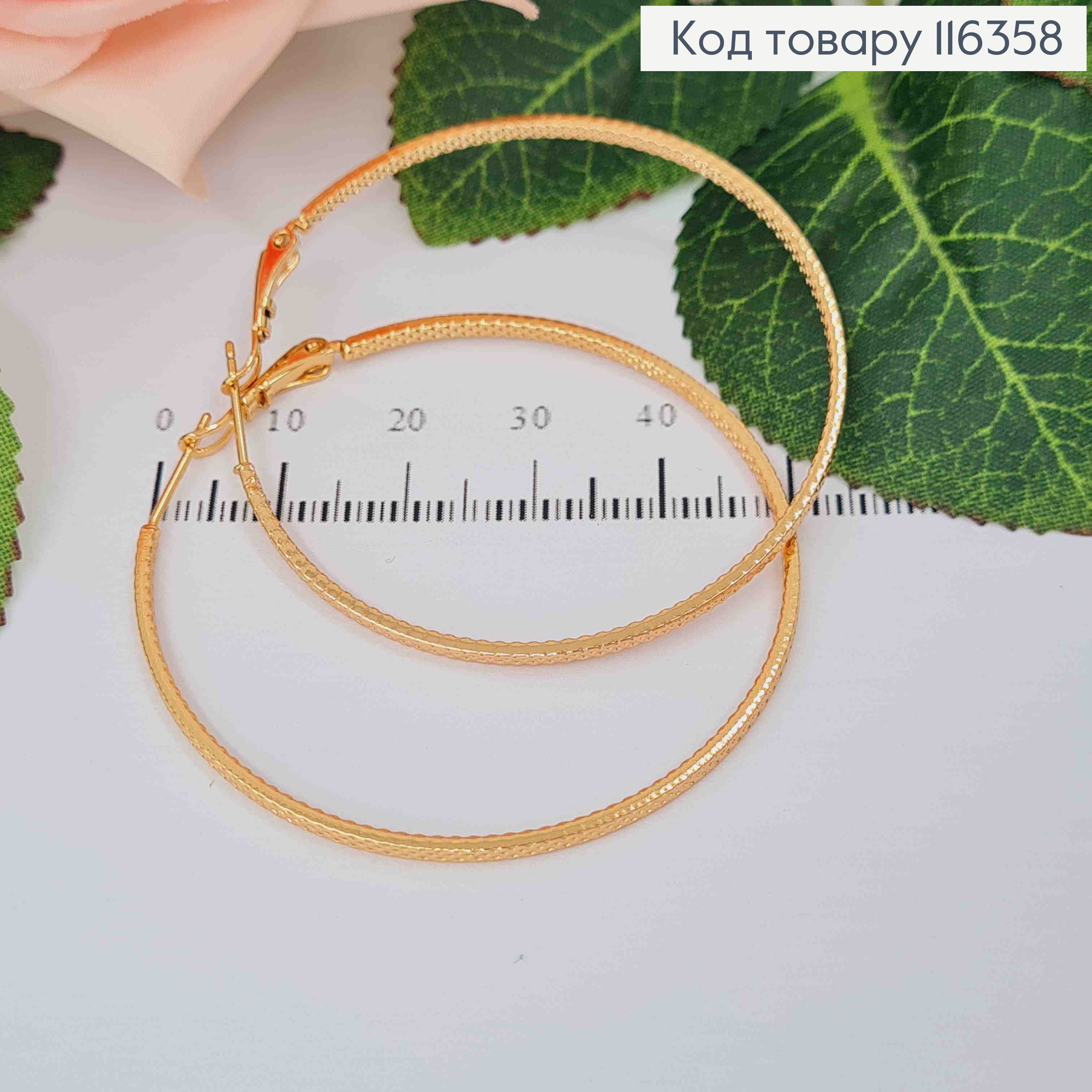 Серьги кольца рифленые, диаметр 5см, Xuping 18K