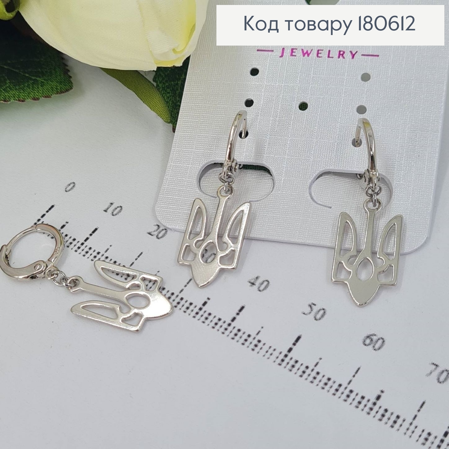 Серьги кольца родированые подвески ГЕРБ Тризуб в оправе 1,1см, Xuping 180613 фото