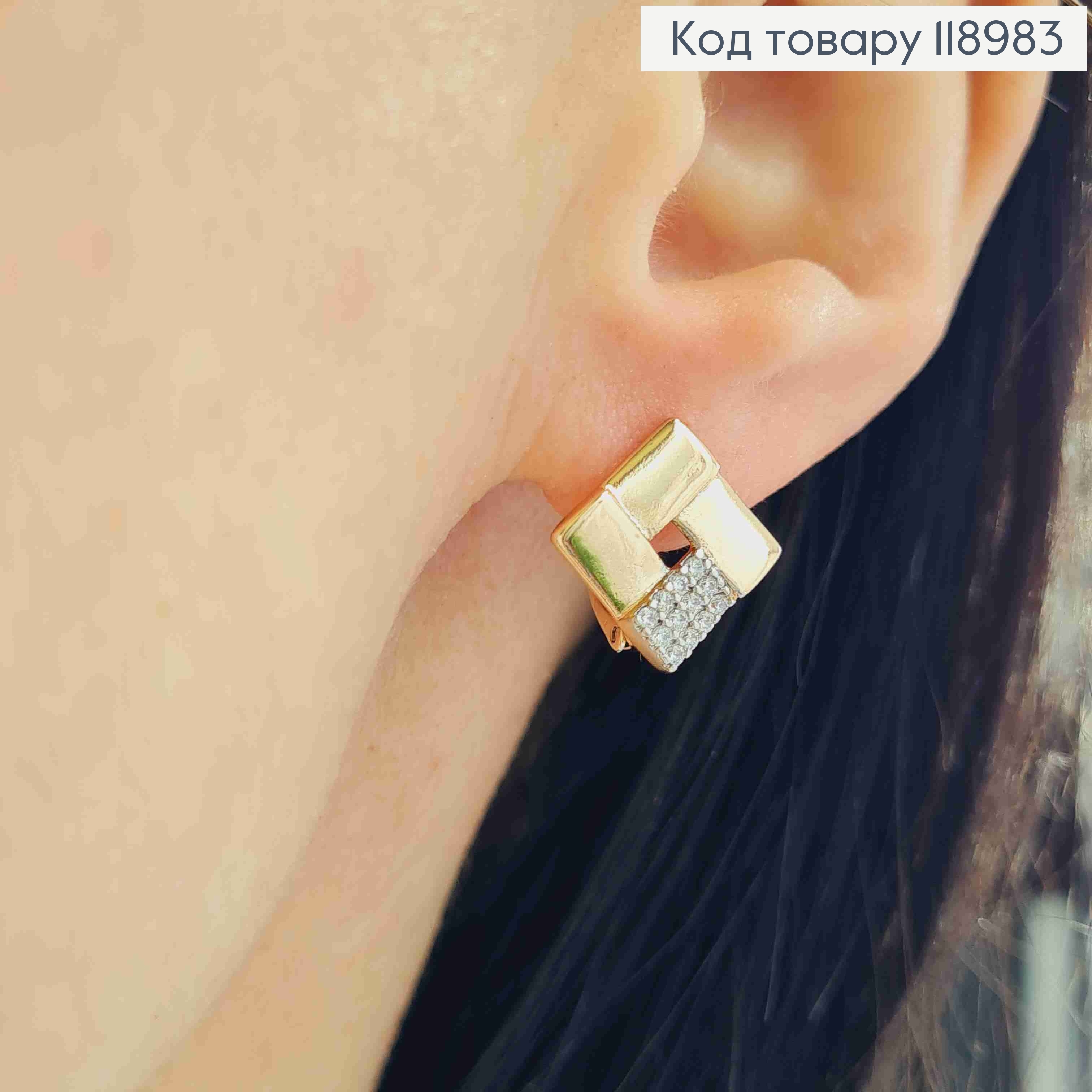 Серьги кольца "Прямоугольные" украшены Блестящими камешками, длиной 2,4см, застежка заколка, Xuping 18К 110199 фото