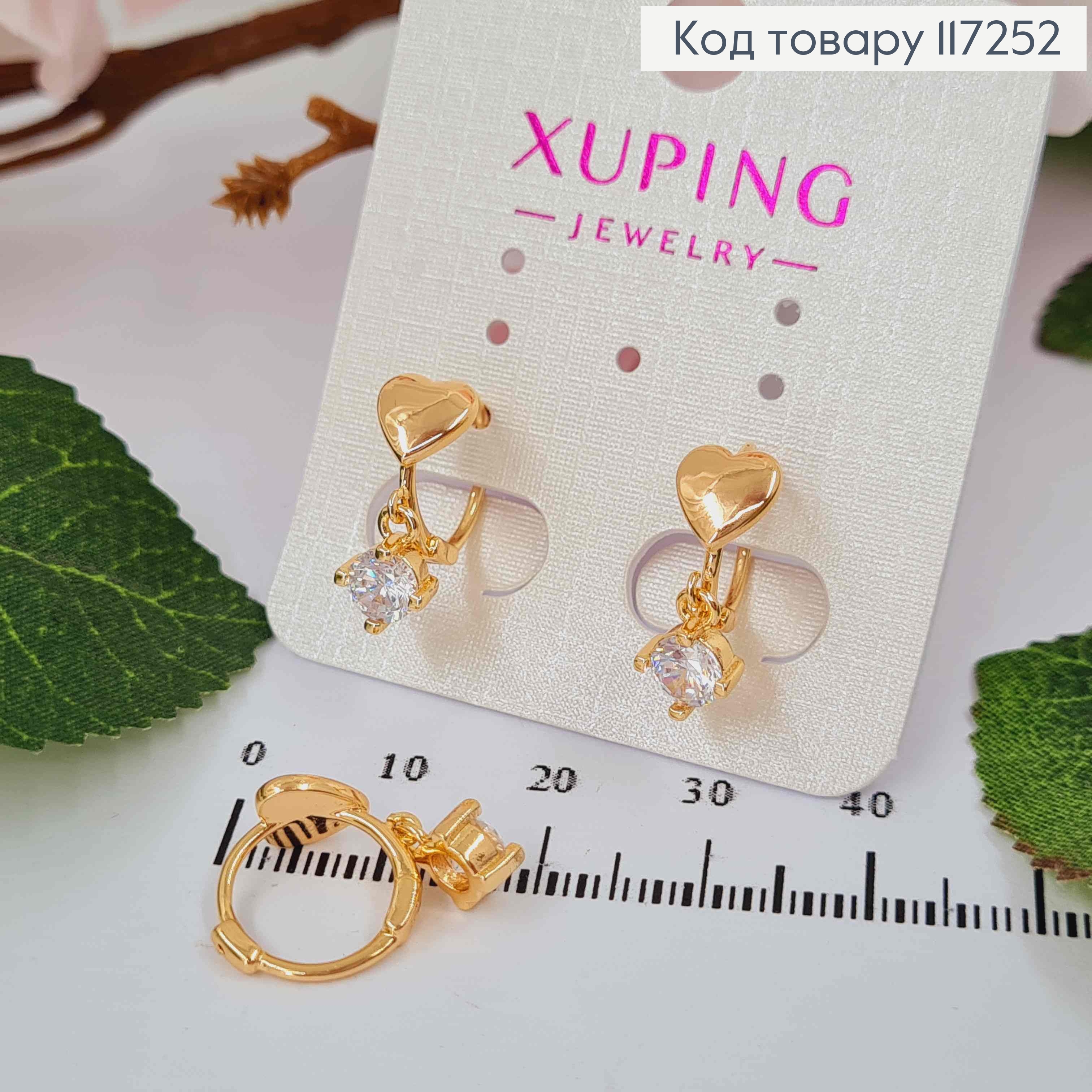 Серьги кольца Сердце с подвеской блестящий камень 6мм, диаметр 1,3см XUPING 18K