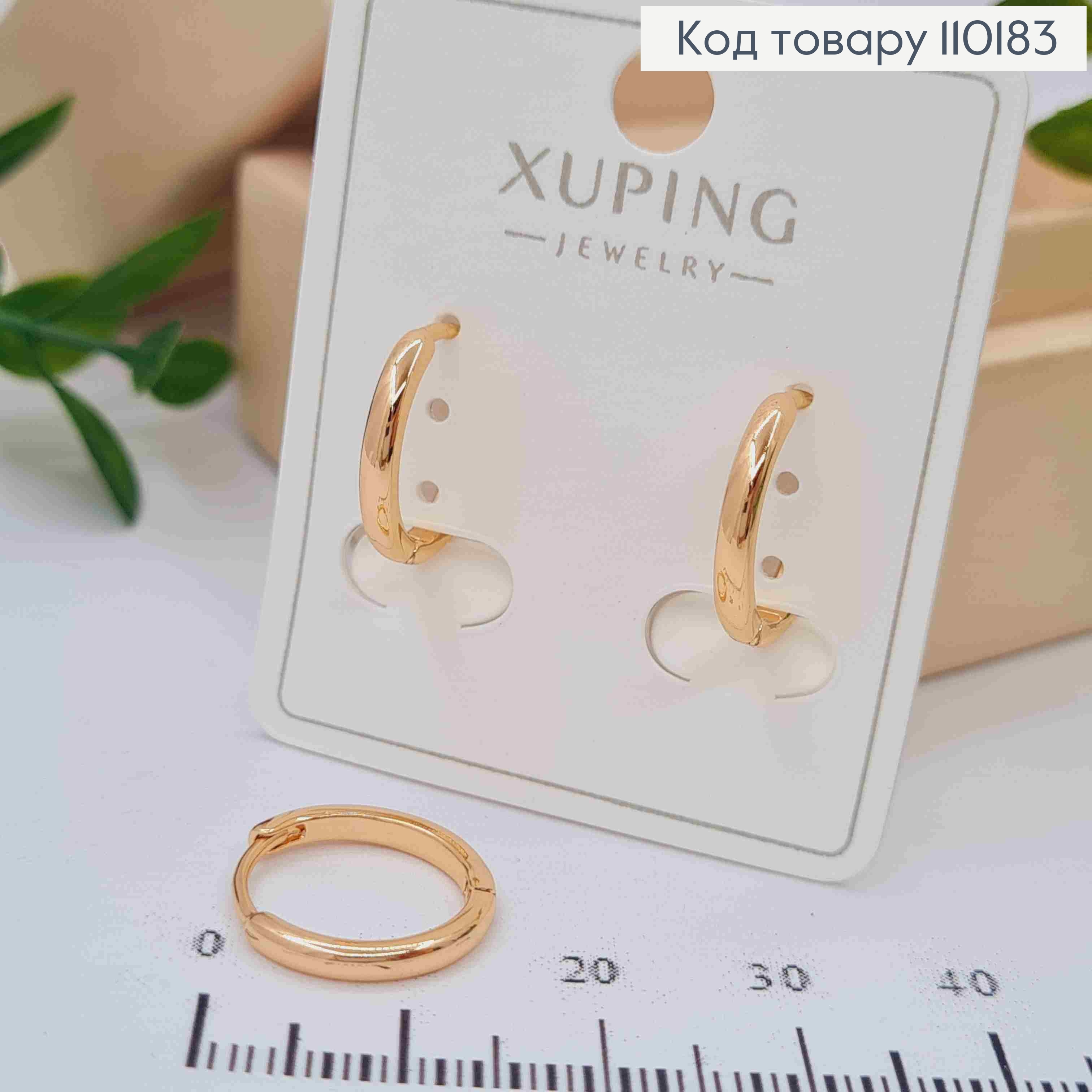 Серьги кольца "Овальные" фактурные, ширина 2мм, длина 1,7см, Xuping 18К. 110197 фото