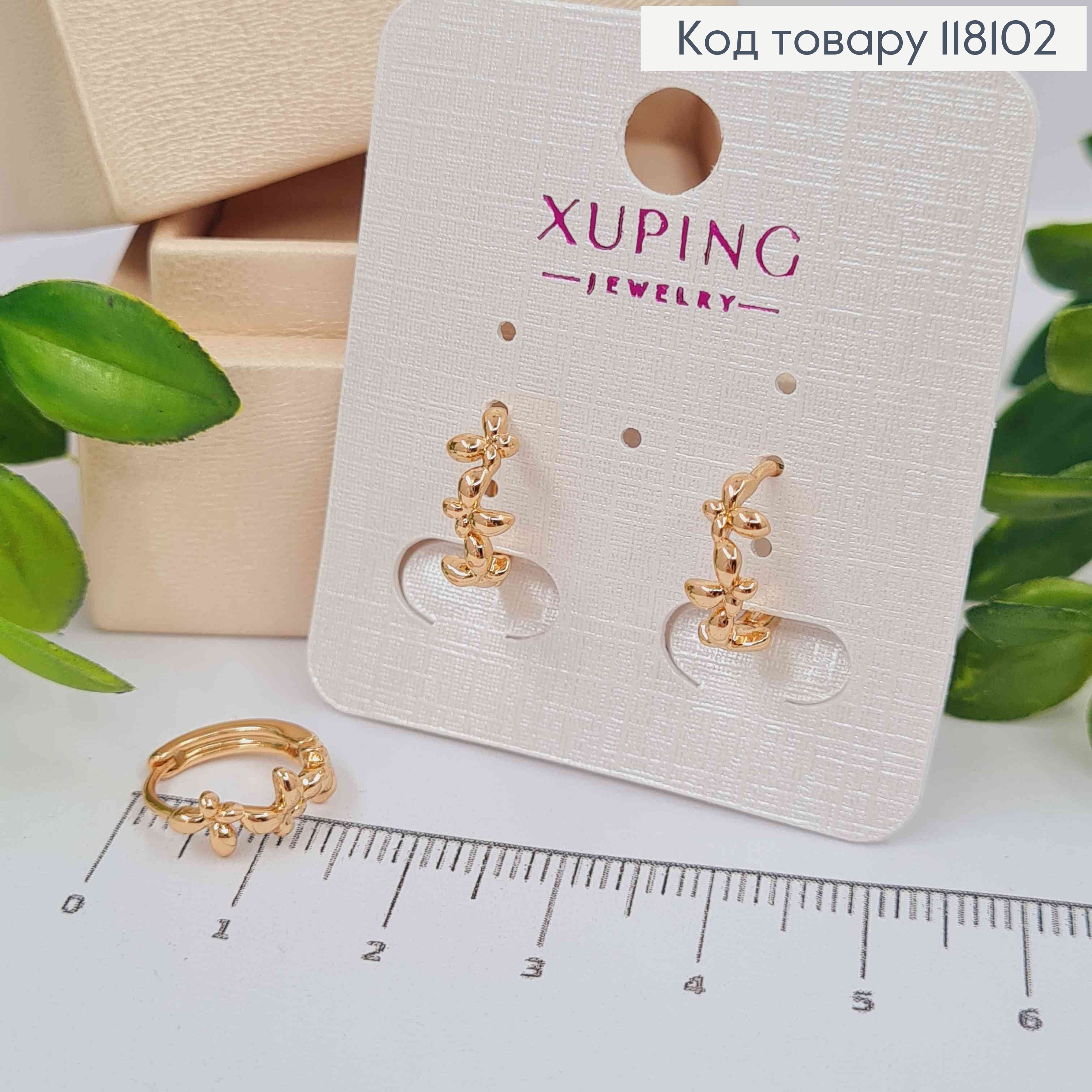Серьги кольца "Три Бабочки", диаметр 1,3см, Xuping 18К