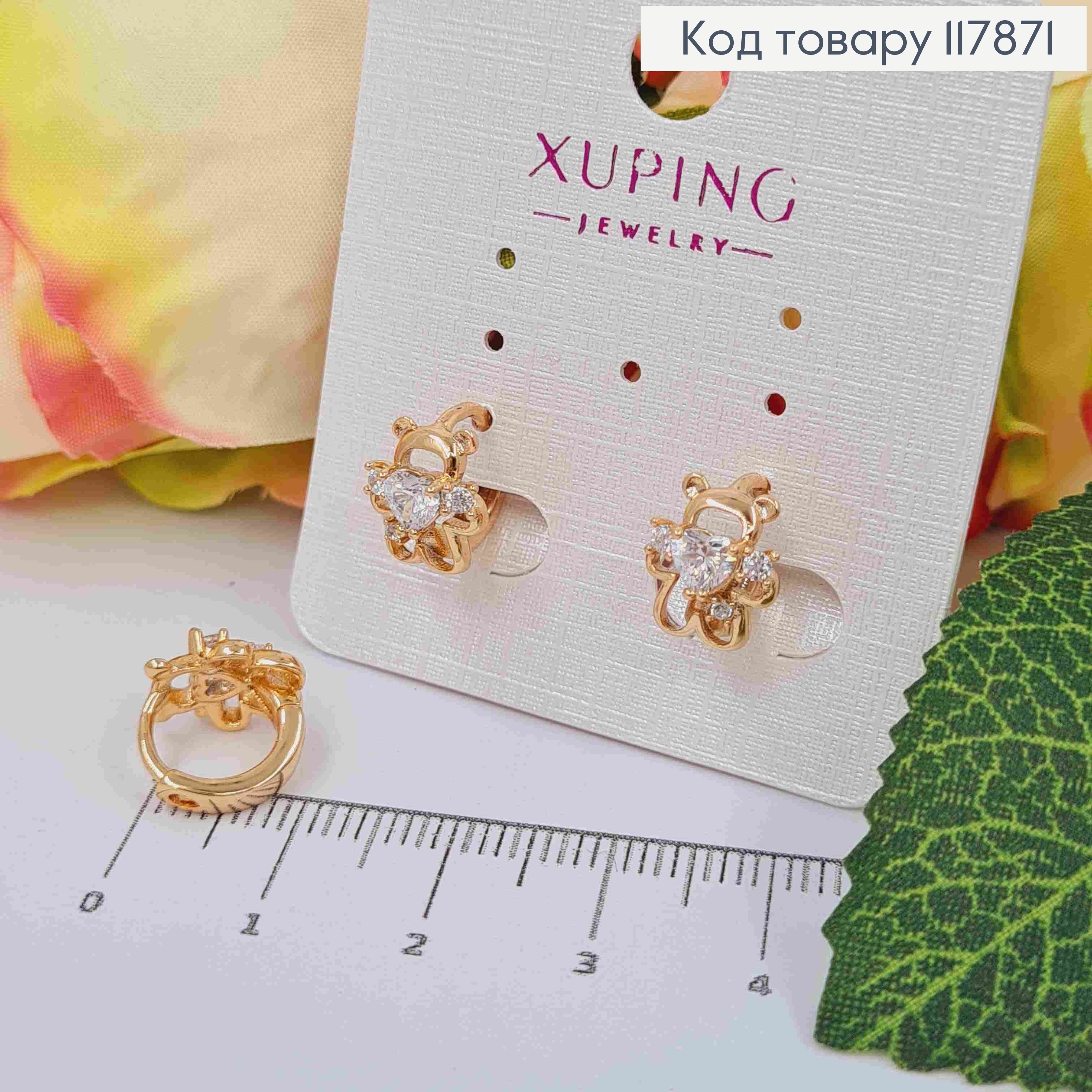 Серьги кольца, "Медвежонок" с Блестящими камешками, диаметр 1,1см, Xuping 18K