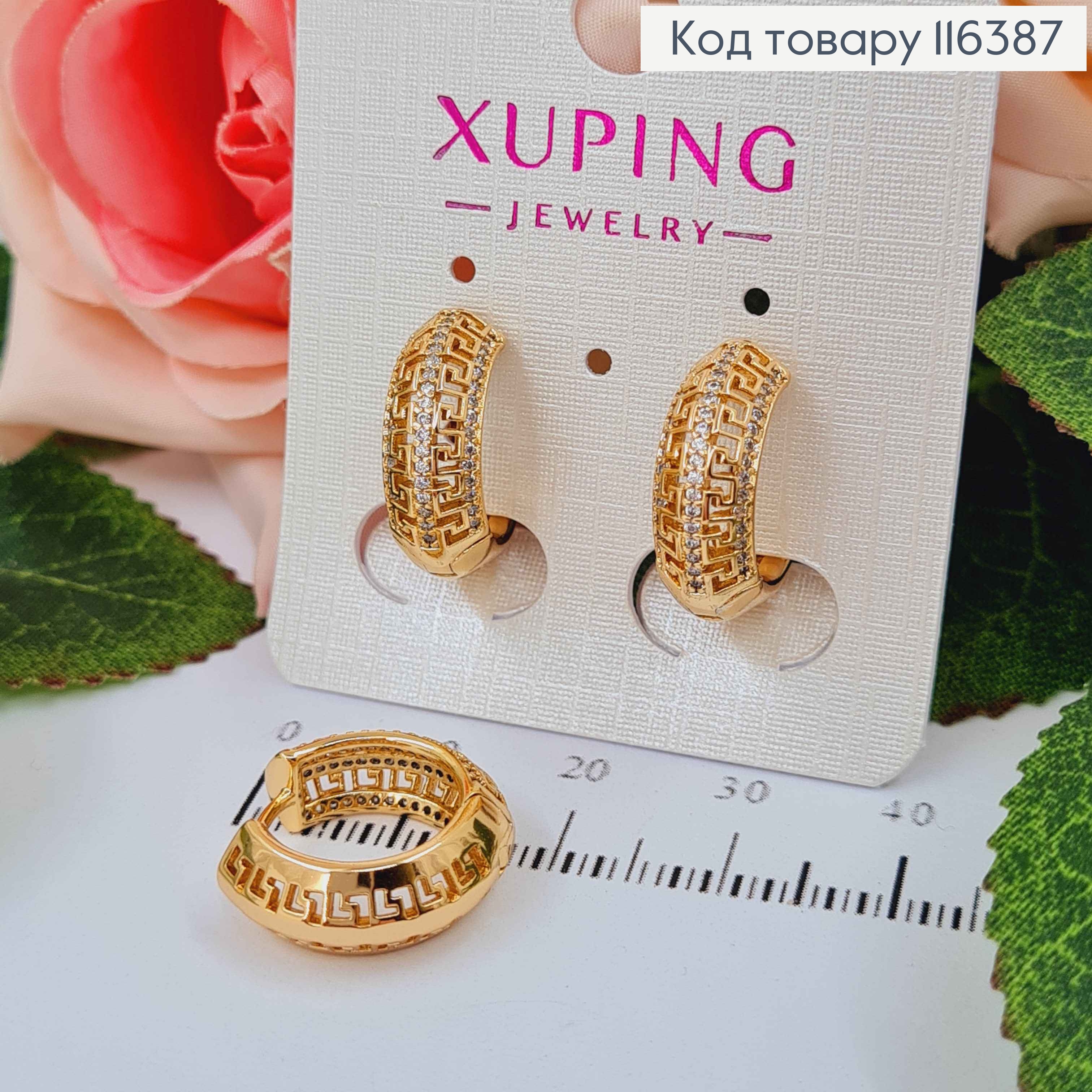 Серьги кольца, Версаче изогнутые с камешками, 1,5см, Xuping 18K