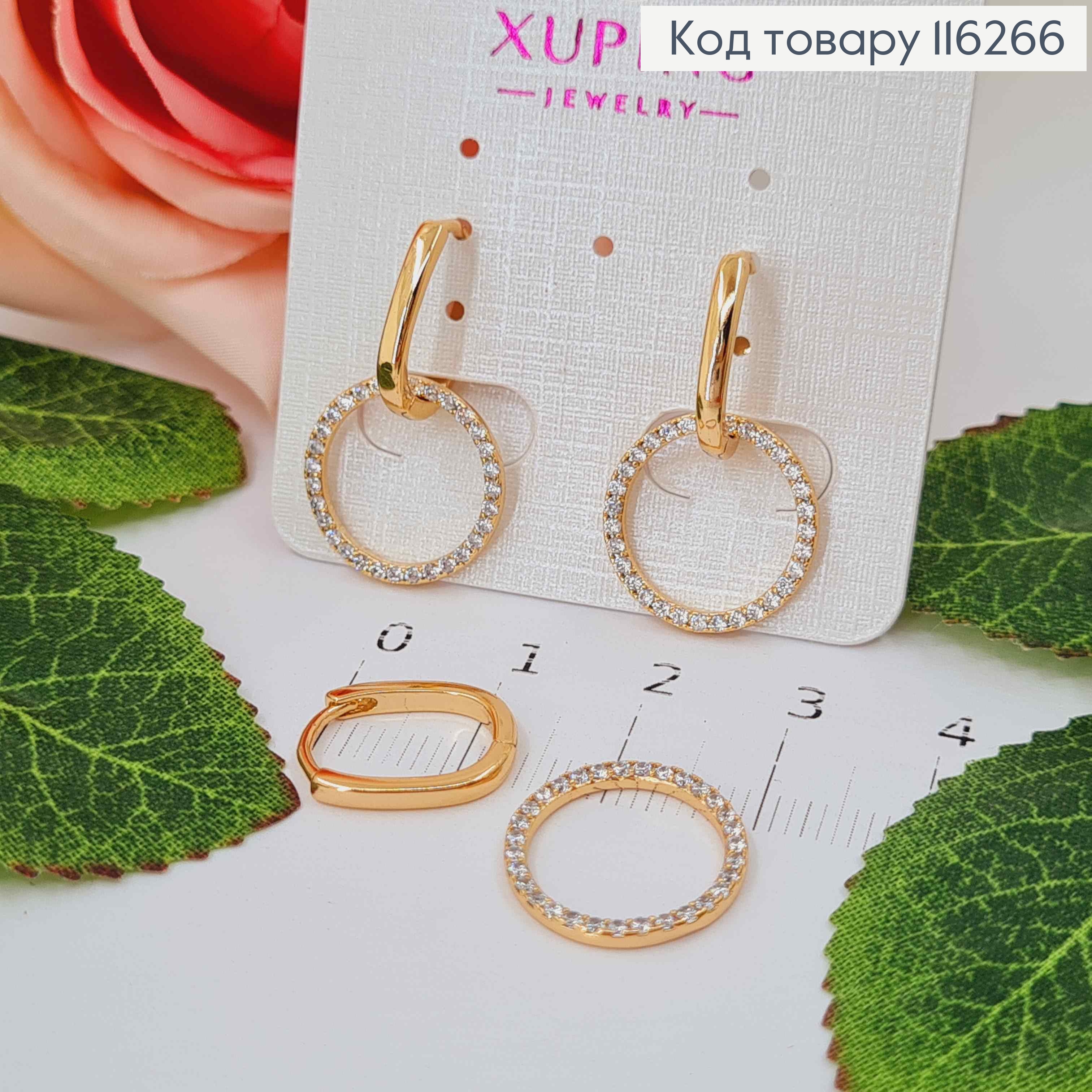Серьги кольца удлиненные(1,3см), трансформеры, с подвеской кольцом в камнях(1,5см) Xuping 18К