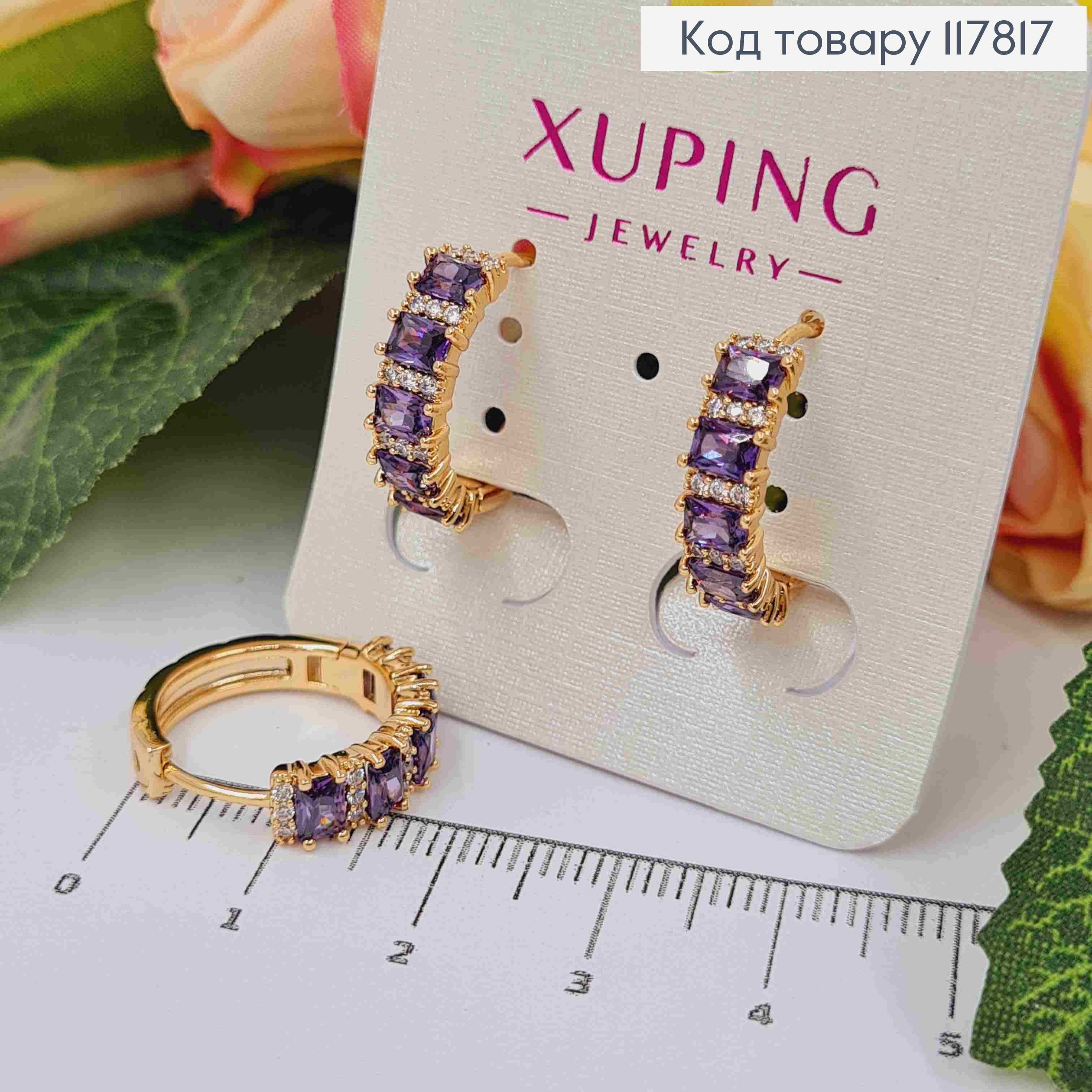 Серьги кольца, с Фиолетовыми камешками, 1,9см, Xuping 18K