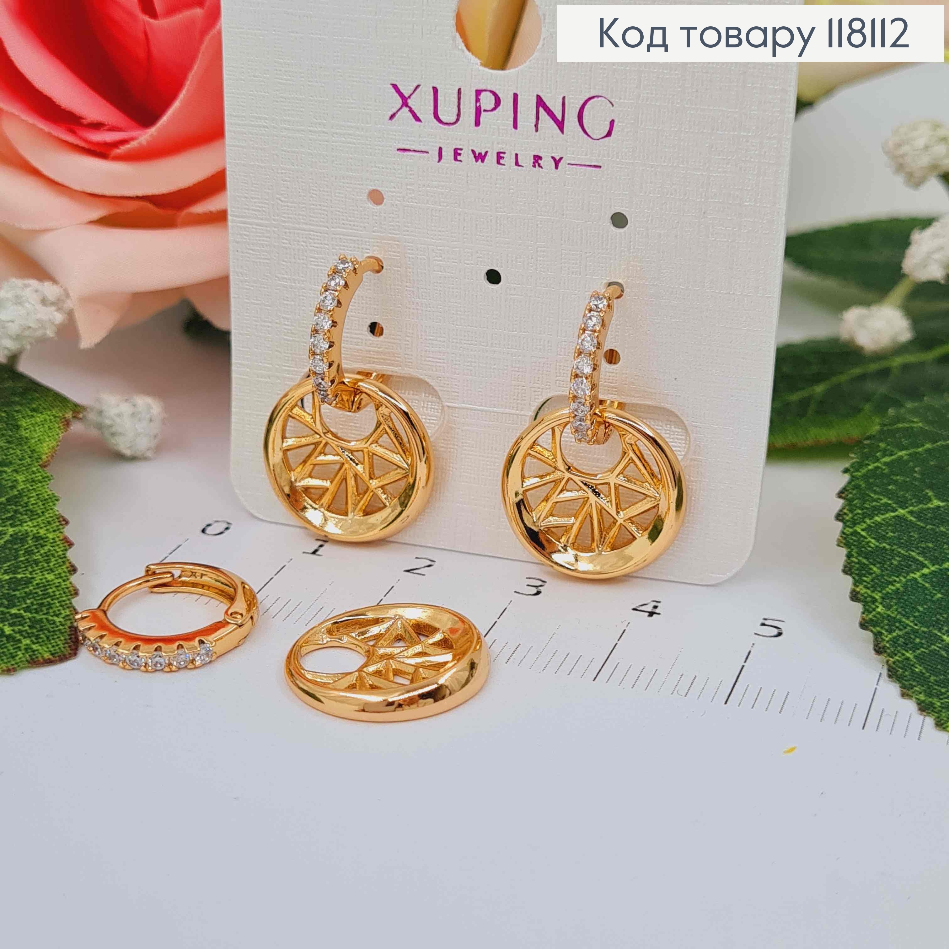 Серьги кольца с камнями и съемной подвеской Ажурное кольцо, 1,2см, Xuping 18K